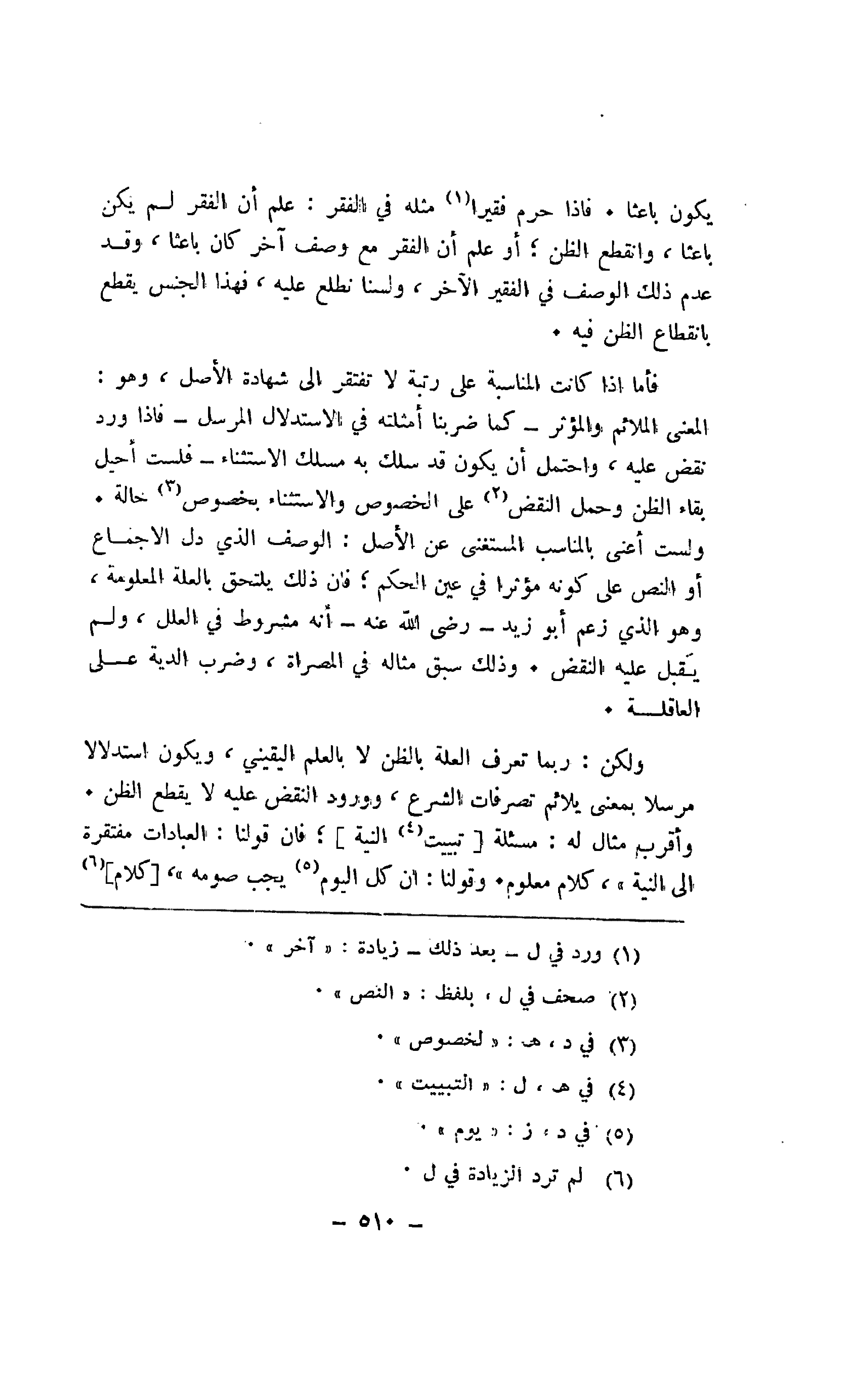 ولكن: ربما تعرف العلة بالظن لا بالعلم اليقيني، ويكون استدلالا مرسلا بمعنى يلائم تصرفات الشرع، وورود النقض عليه لا يقطع الظن. وأقرب مثال له. مسئلة [تبييت النية]؛ فإن قولنا: العبادات مفتقرة إلى النية"، كلام معلوم. وقولنا: أن كل اليوم يجب صومه"، [كلام]