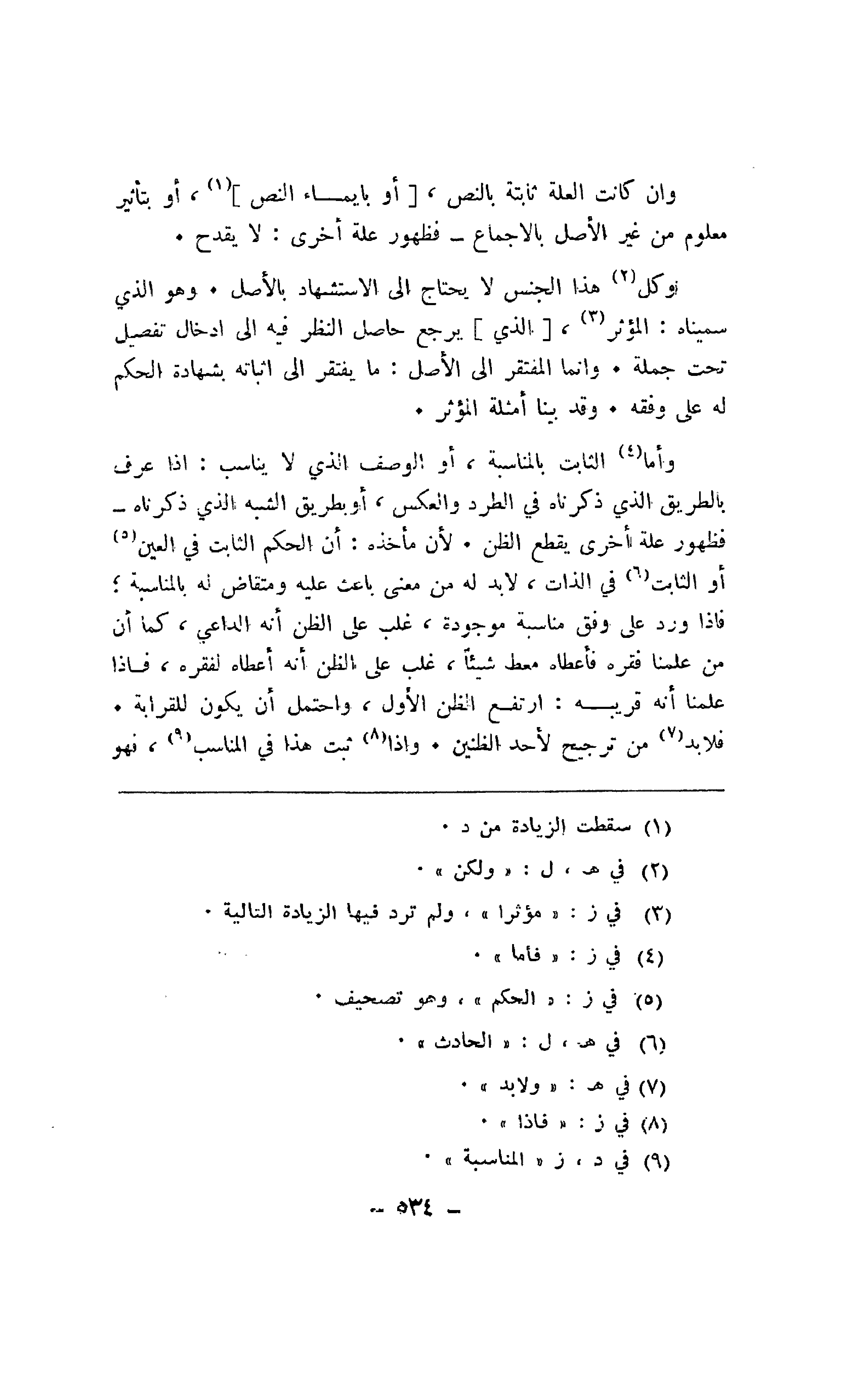 وكل هذا الجنس لا يحتاج إلى الاستشهاد بالأصل. وهو الذي سميناه: المؤثر، [الذي] يرجع حاصل النظر فيه إلى إدخال تفصيل تحت جملة. وإنما المفتقر إلى الأصل: ما يفتقر إلى إثباته بشهادة الحكم له على وفقه. وقد بينا أمثلة المؤثر.