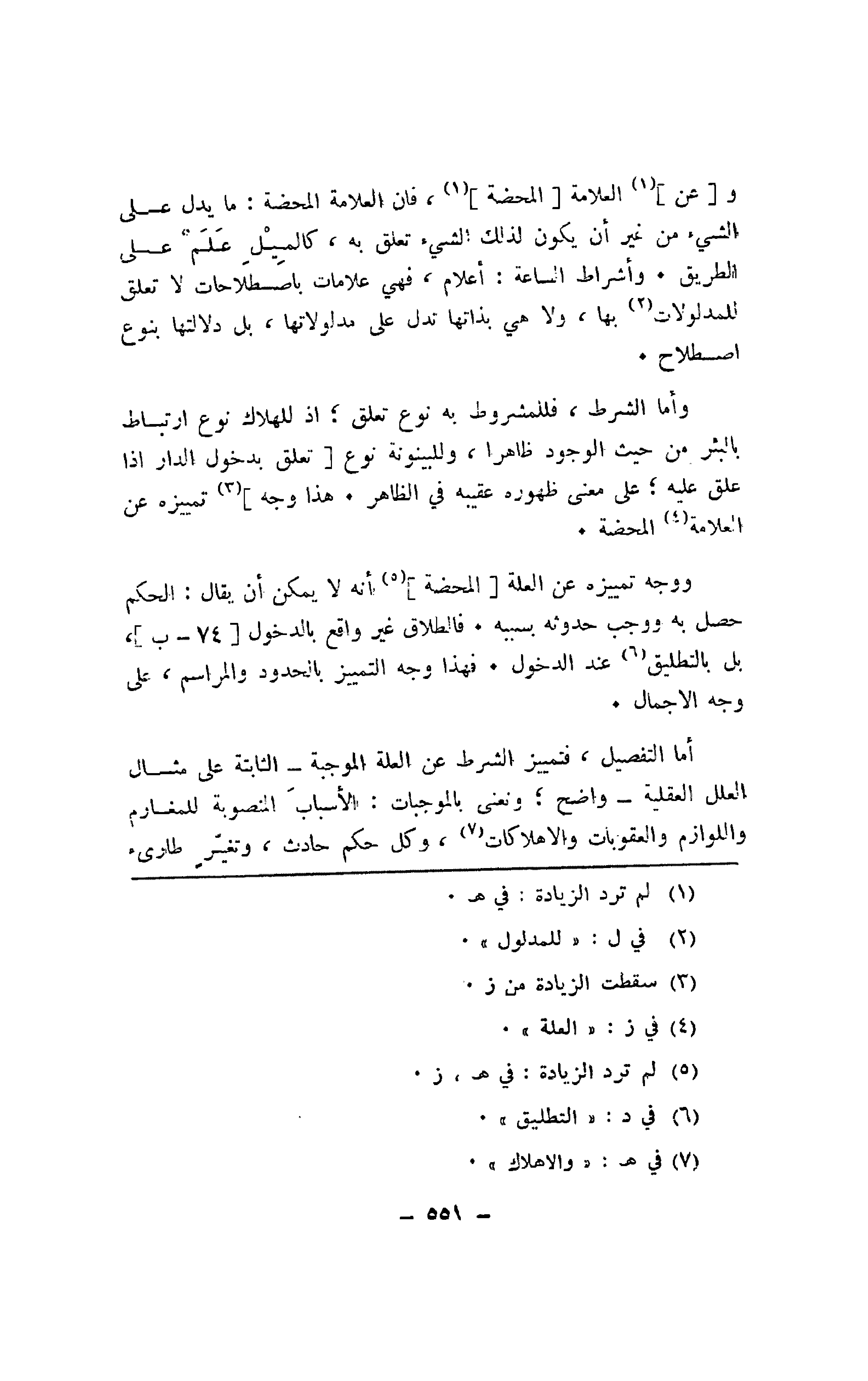 أما التفصيل، فتمييز الشرط عن العلة الموجبة -الثابتة على مثال العلل العقلية -واضح؛ ونعني بالموجبات: الأسباب المنصوبة للمغارم واللوازم والعقوبات والاهلاكات، وكل حكم حادث، وتغير طارئ