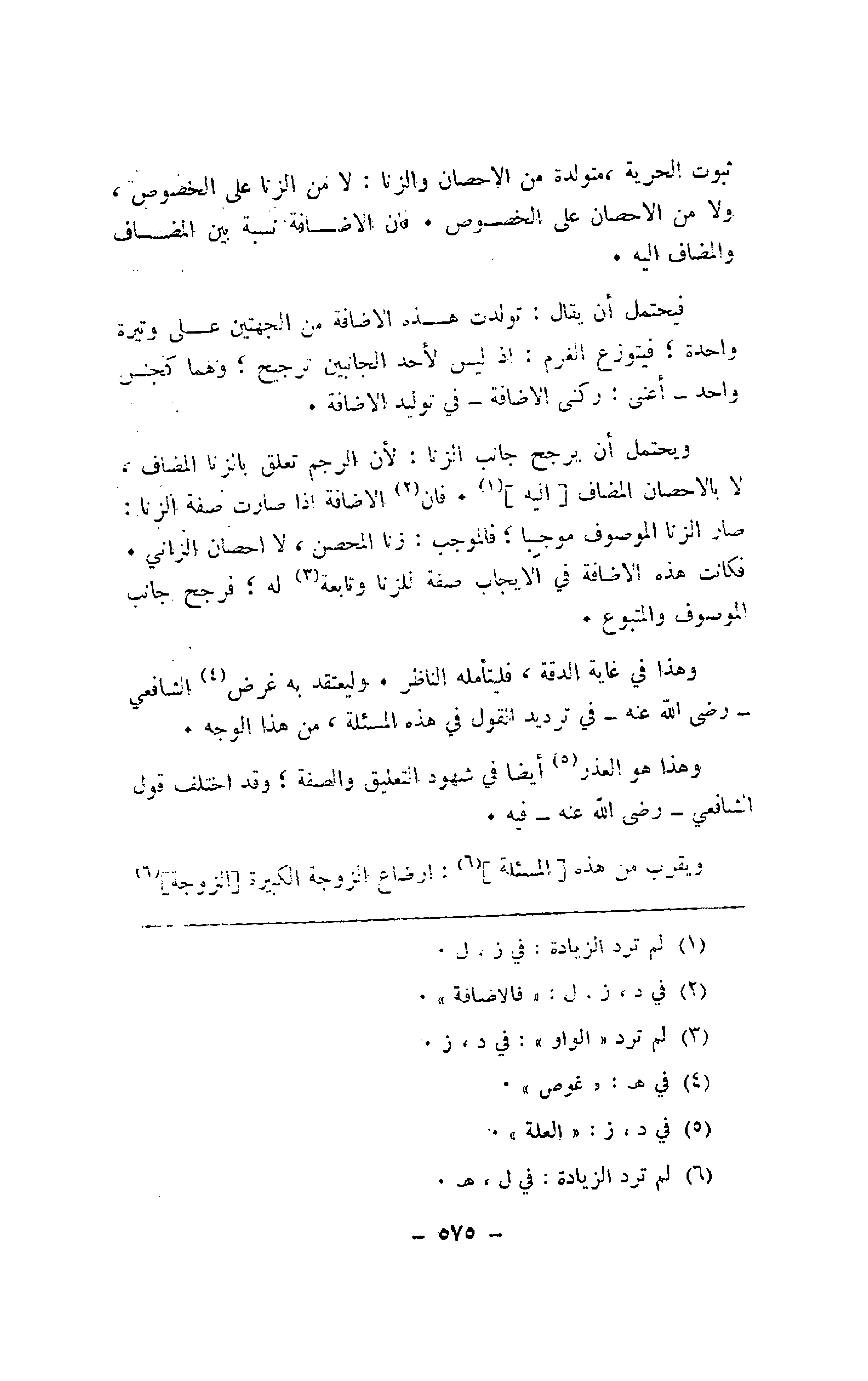 ويحتمل أن يرجح جانب الزنا: لأن الرجم تعلق بالزنا المضاف، لا بالإحصان المضاف [إليه]. فإن الإضافة إذا صارت صفة الزنا: صار الزنا الموصوف موجبًا؛ فالموجب: زنا المحصن، لا إحصان الزاني. فكانت هذه الإضافة في الإيجاب صفة للزنا وتابعة له: فرجح جانب الموصوف والمتبوع.