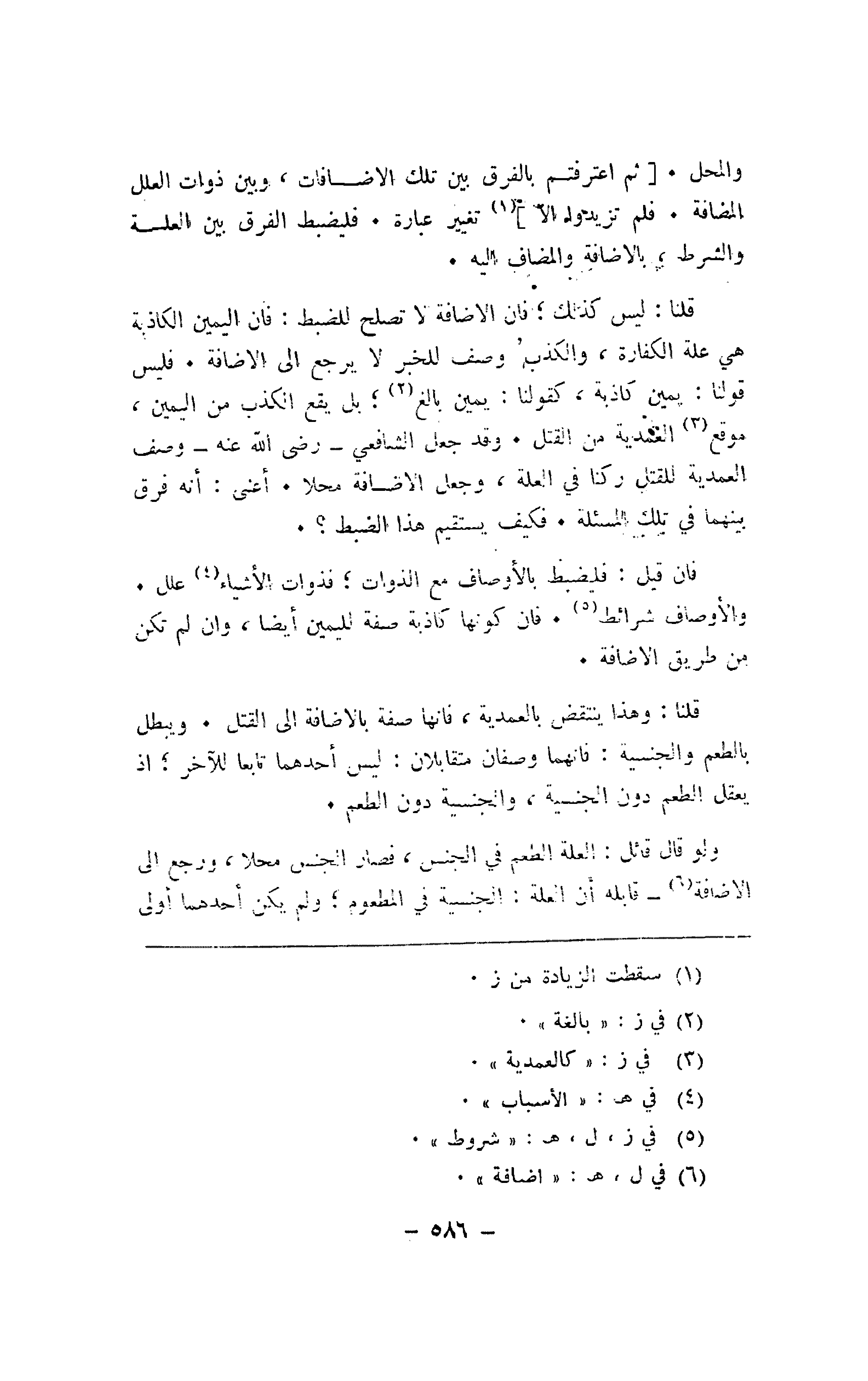 والمحل. [ثم اعترفتم بالفرق بين تلك الأضافات، وبين ذوات العلل المضافة. فلم تزيدوا إلا] تغيير عبارة. فليضبط الفرق بين العلة والشرط، بالإضافة والمضاف إليه.