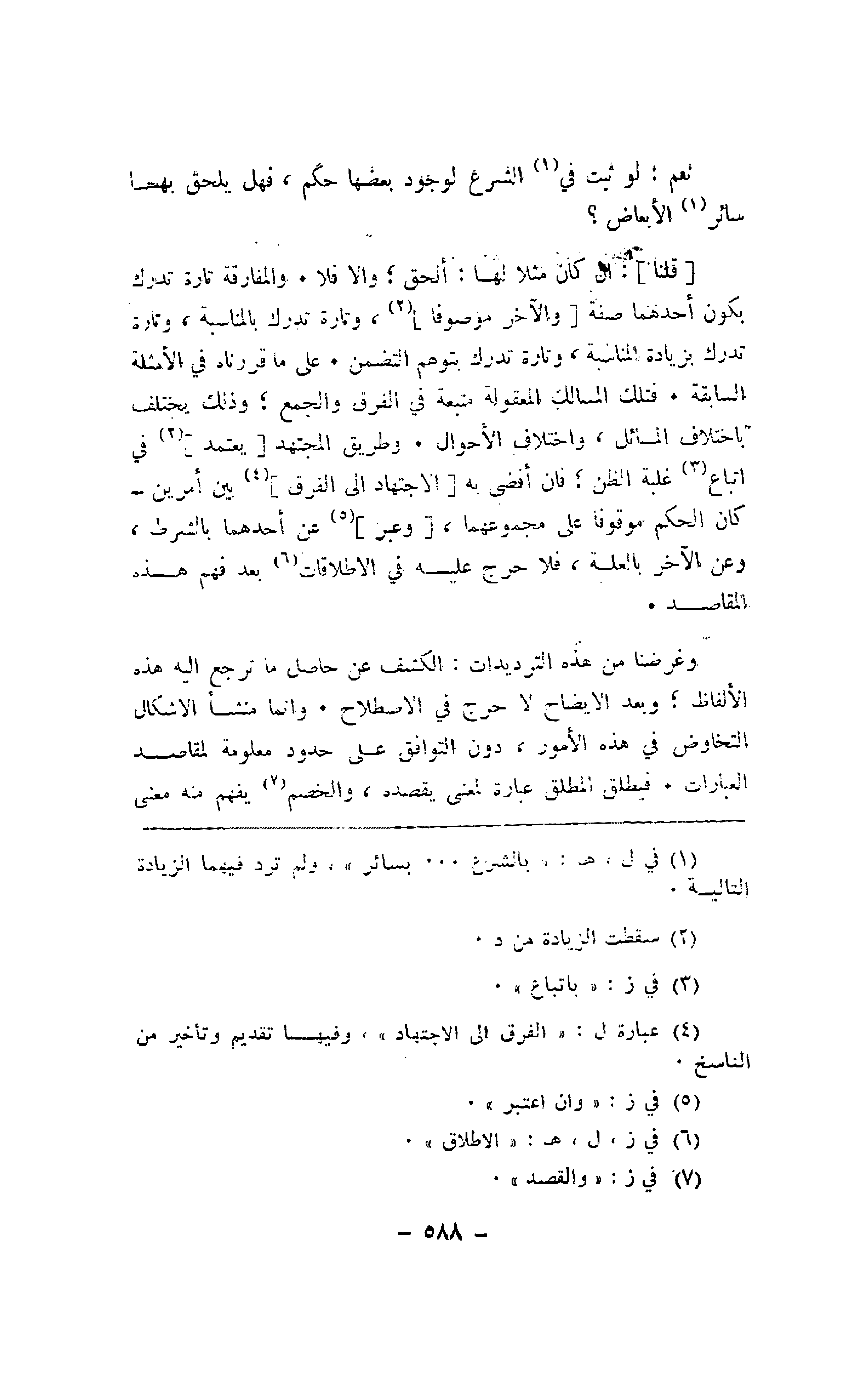 وغرضنا من هذه الترديدات: الكشف عن حاصل ما ترجع إليه هذه الألفاظ؛ وبعد الإيضاح لا حرج في الاصطلاح. وإنما منشأ الأشكال التخاوض في هذه الأمور، دون التوافق على حدود معلومة لمقاصد العبارات. فيطلق المطلق عبارة لمعنى يقصده، والخصم يفهم منه معنى
