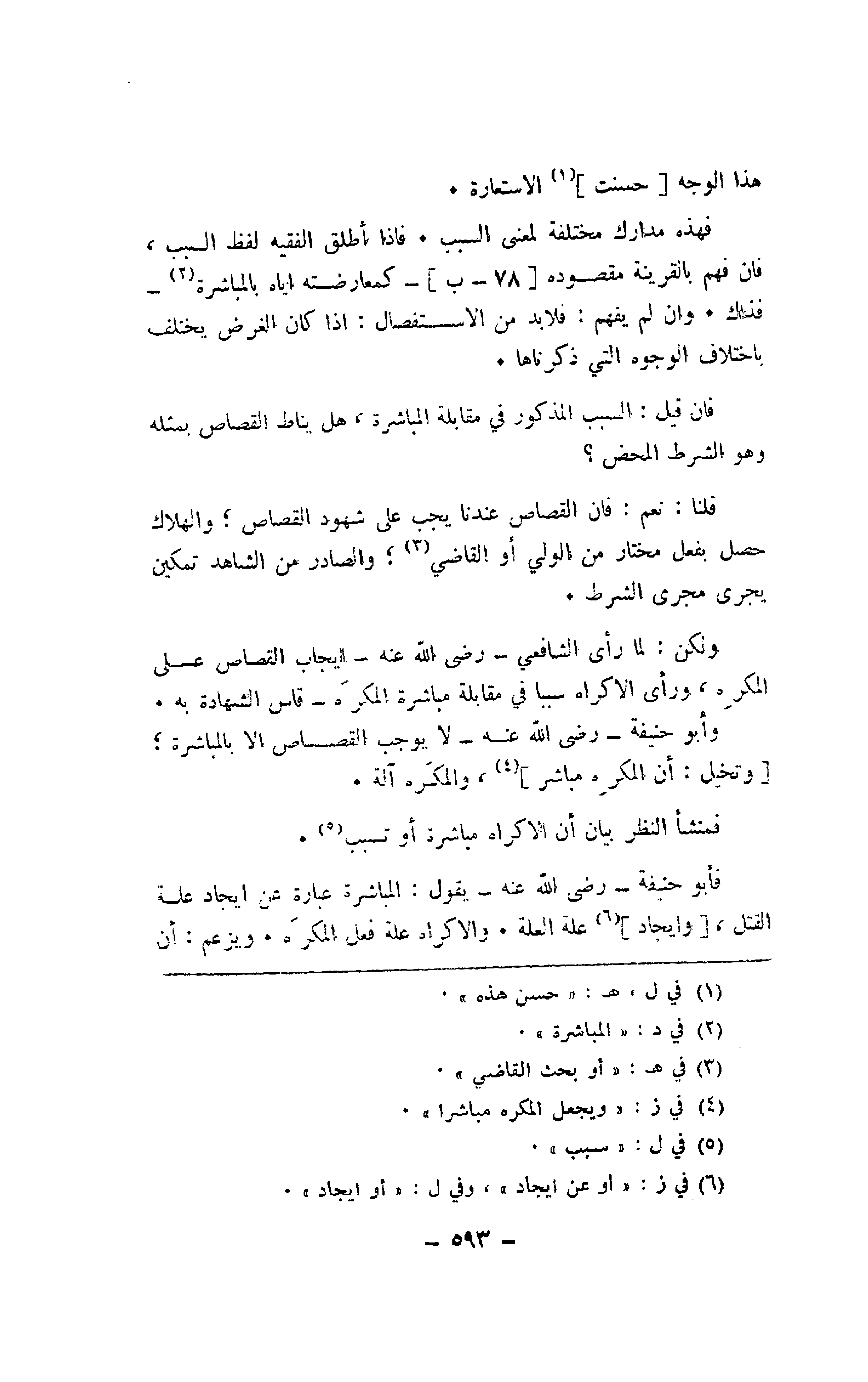 فأبو حنيفة -رضي الله عنه- يقول: المباشرة عبارة عن إيجاد علة القتل، [وإيجاد] علة العلة. والإكراه علة فعل المكره. ويزعم: أن