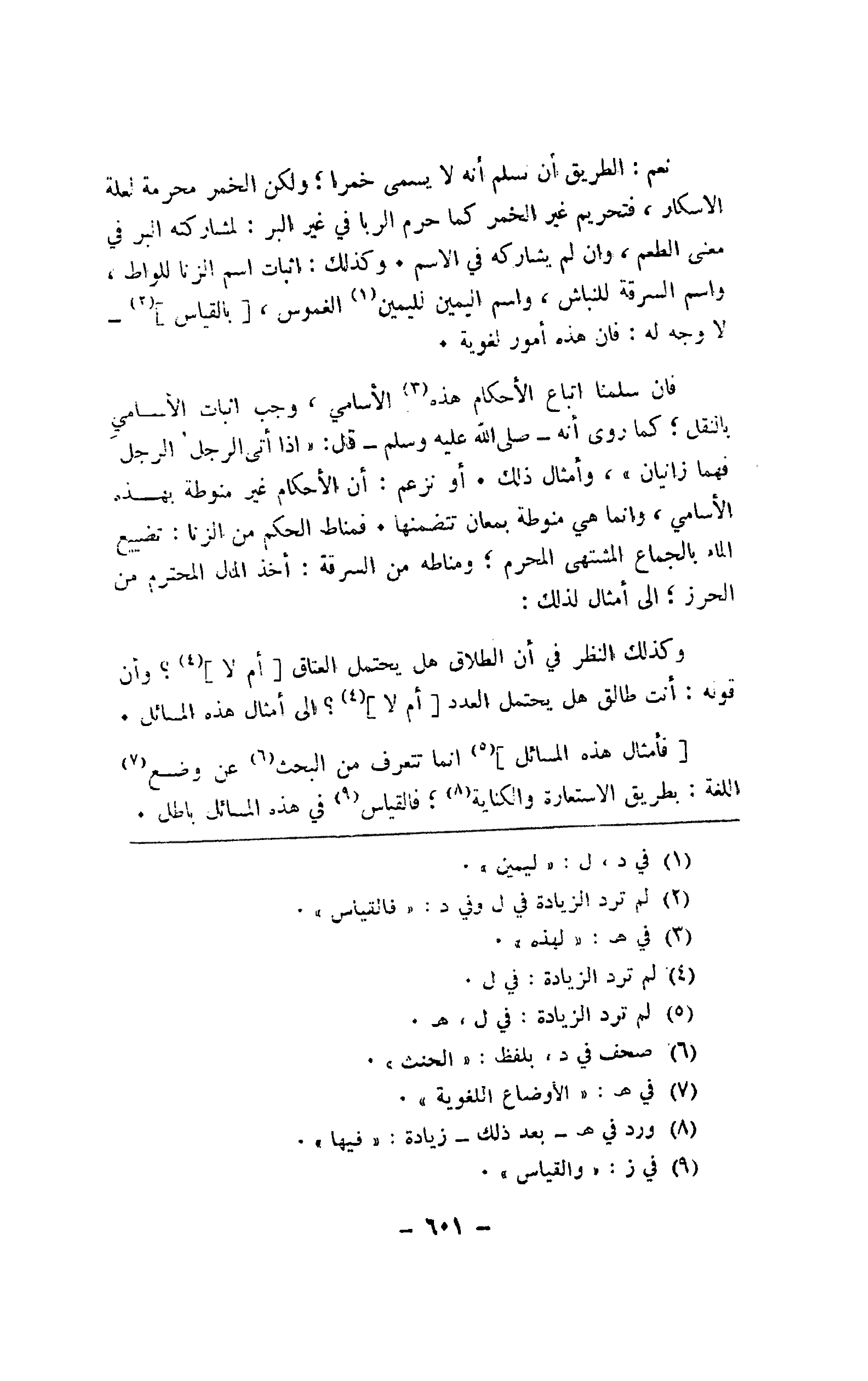 نعم: الطريق أن نسلم أنه لا يسمى خمرًا؛ ولكن الخمر محرمة لعلة الإسكار، فتحريم غير الخمر كما حرم الربا في غير البر: لمشاركته البر في معنى الطعم، وإن لم يشاركه في الاسم. وكذلك: إثبات اسم الزنا للواط، واسم السرقة للنباش، واسم اليمين لليمين الغموس، [بالقياس]-لا وجه له: فإن هذه أمور لغوية.