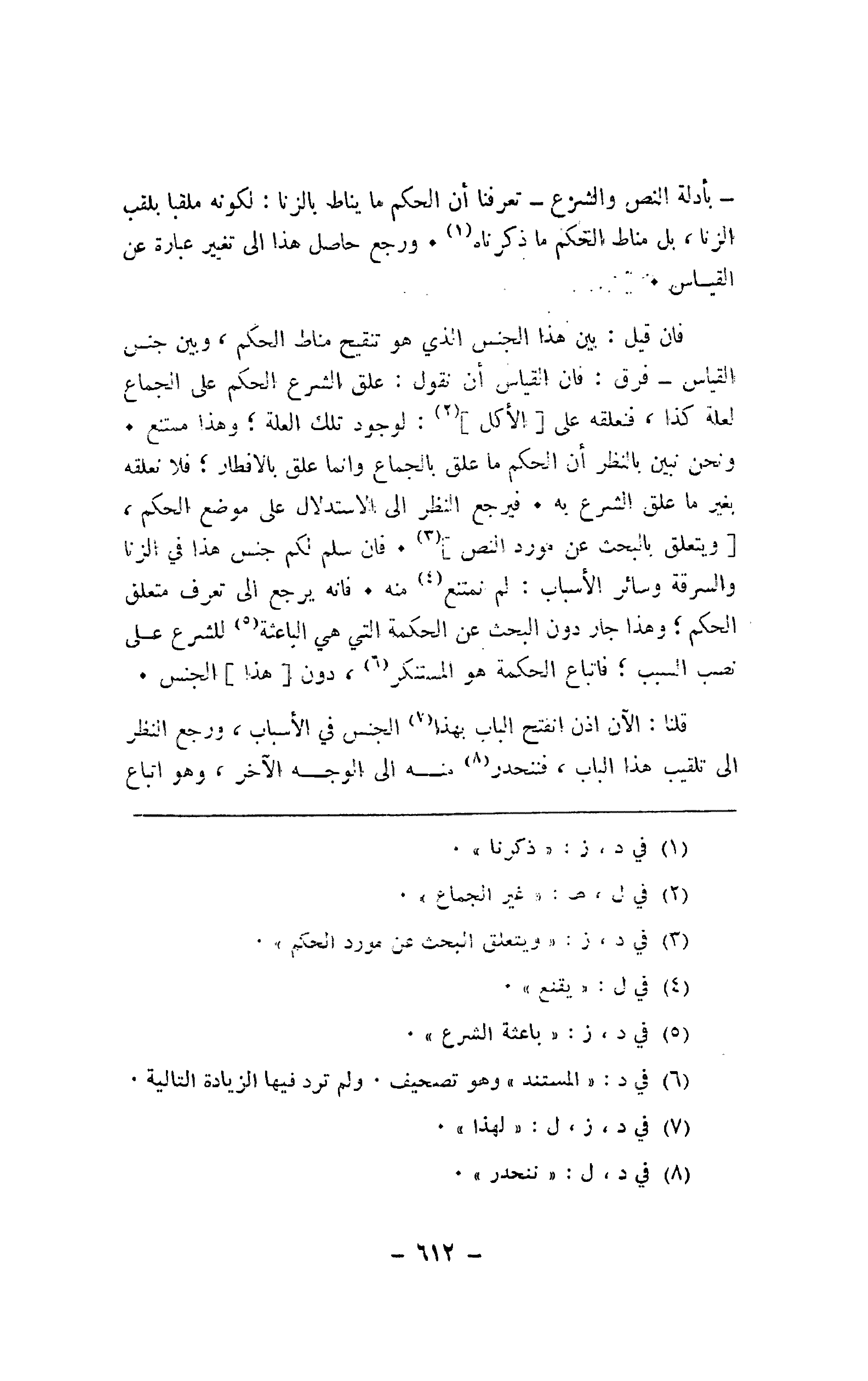 فإن قيل: بين هذا الجنس الذي هو تنقيح مناط الحكم، وبين جنس القياس- فرق: فإن القياس أن نقول: علق الشرع الحكم على الجماع لعلة كذا، فنعلقه على [الأكل]: لوجود تلك العلة؛ وهذا ممتنع. ونحن نبين بالنظر أن الحكم ما علق بالجماع وإنما علق بالإفطار؛ فلا نعلقه بغير ما علق الشرع به. فيرجع النظر إلى الاستدلال على موضع الحكم، [ويتعلق بالبحث عن مورد النص]. فإن سلم لكم جنس هذا في الزنا والسرقة وسائر الأسباب: لم نمتنع منه. فإنه يرجع إلى تعرف متعلق الحكم؛ وهذا جار دون البحث عن الحكمة التي هي الباعثة للشرع على نصب السبب؛ فاتباع الحكمة هو المستنكر، دون [هذا] الجنس.