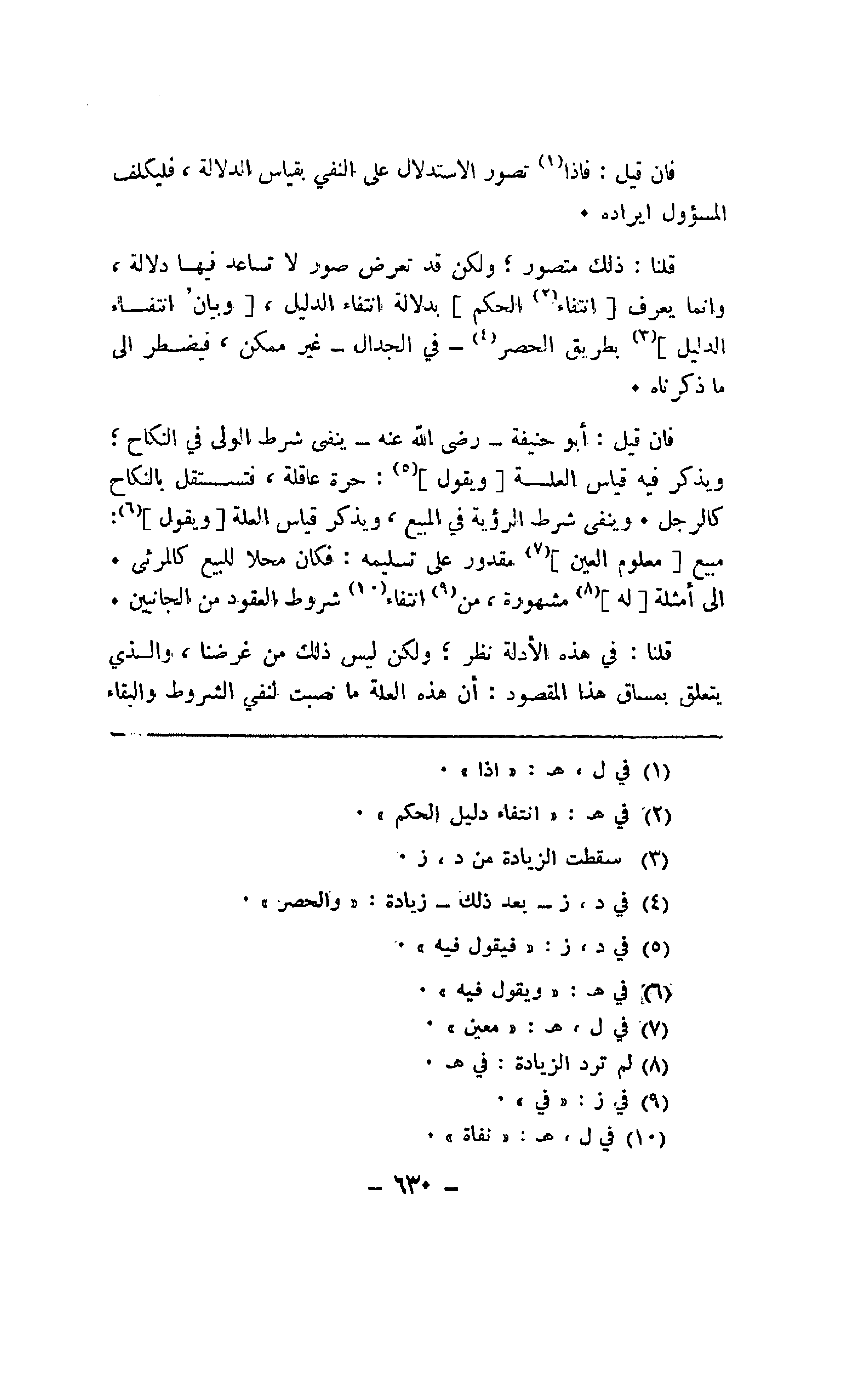 قلنا: في هذه الأدلة نظر؛ ولكن ليس ذلك من غرضنا، والذي يتعلق بمساق هذا المقصود: أن هذه العلة ما نصبت لنفي الشروط والبقاء