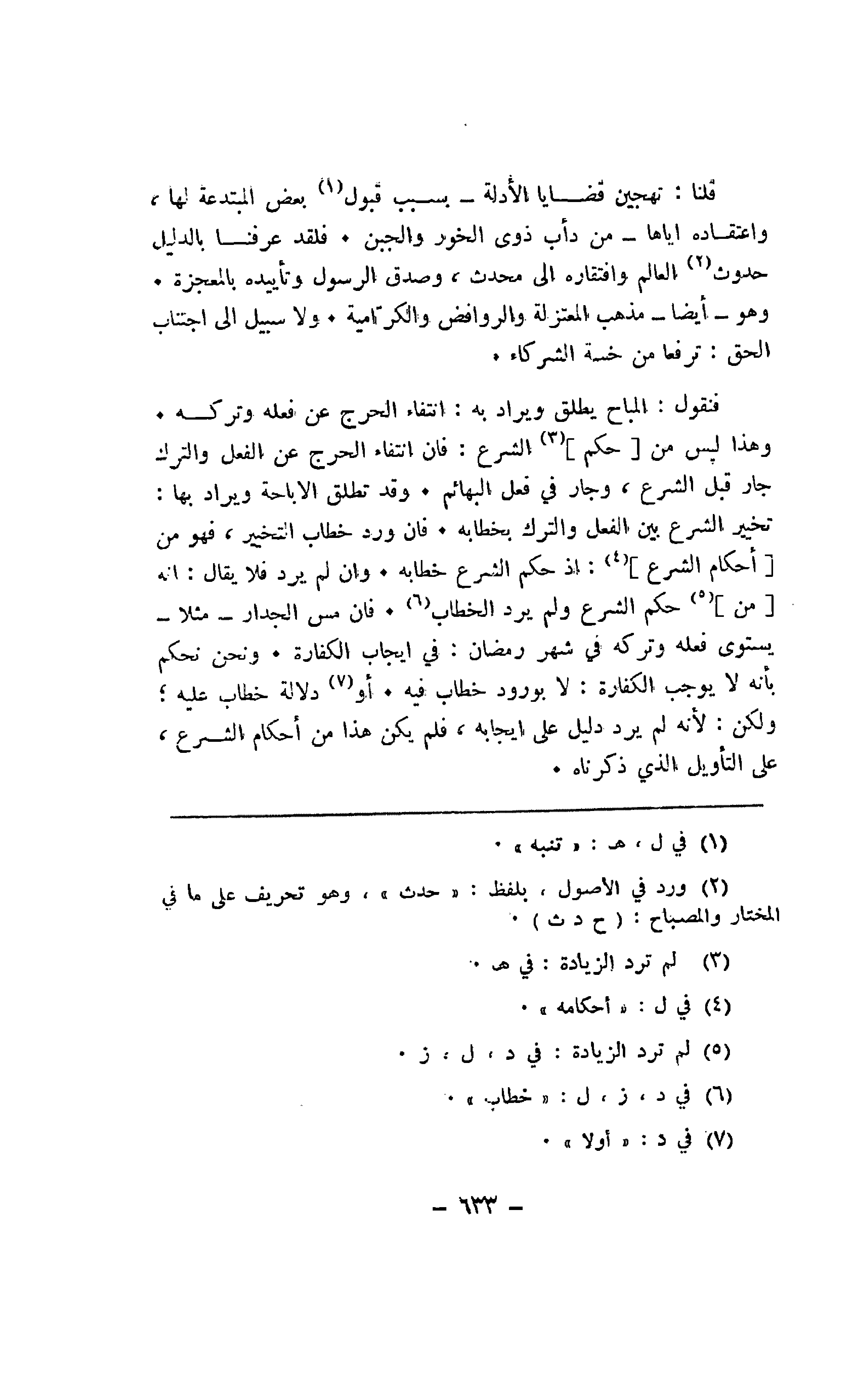 قلنا: تهجين قضايا الأدلة -بسبب قبول بعض المبتدعة لها، واعتقاده إياها- من دأب ذوي الخور والجبن. فلقد عرفنا بالدليل حدوث العالم وافتقاره إلى محدث، وصدق الرسول وتأييده بالمعجزة. وهو -أيضًا- مذهب المعتزلة والروافض والكرامية. ولا سبيل إلى اجتناب الحق: ترفعا من خسة الشركاء.