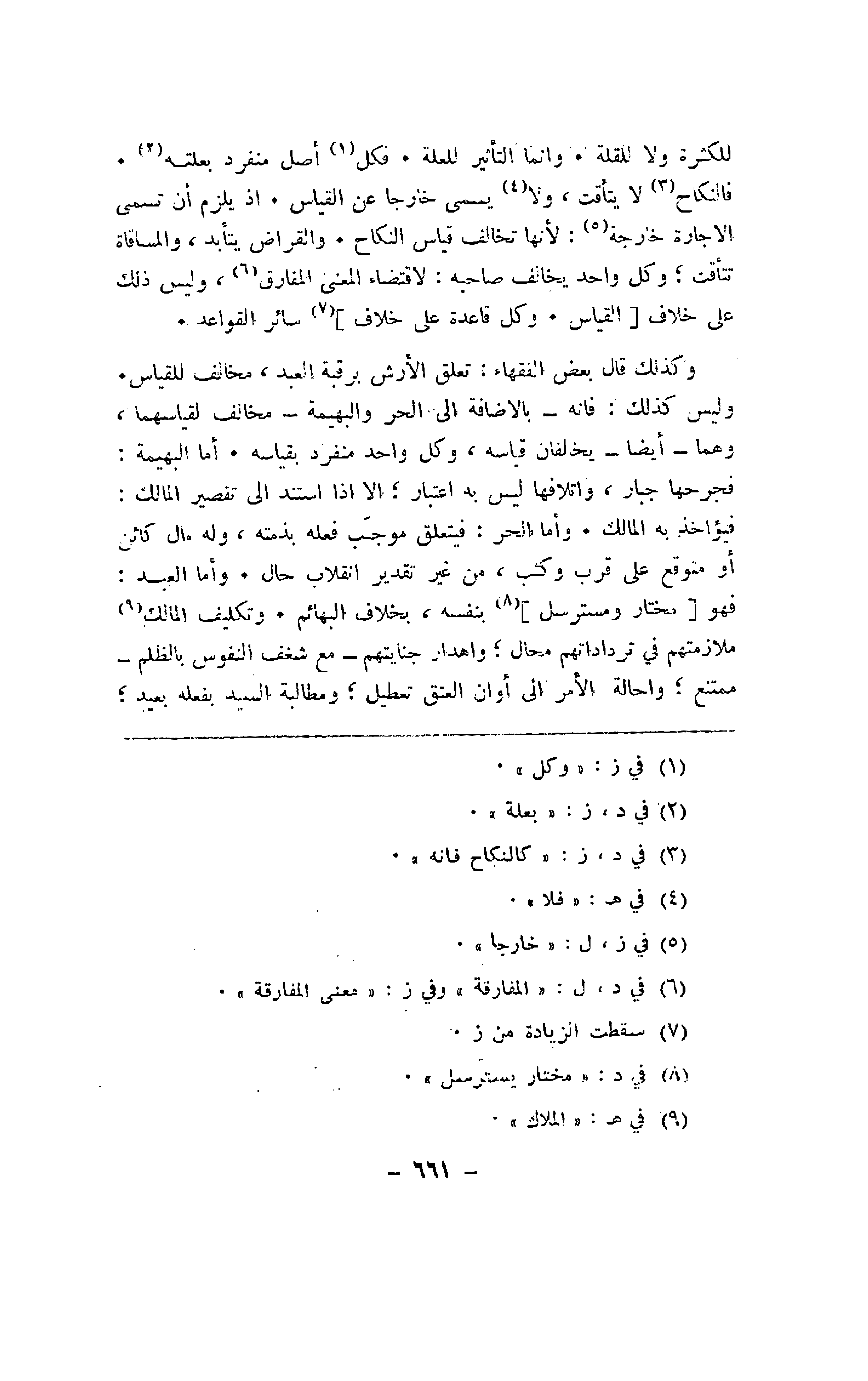 للكثرة ولا للقلة. وإنما التأثير للعلة. فكل أصل منفرد بعلته. فالنكاح لا يتأقت، ولا يسمى خارجًا عن القياس. إذ يلزم أن تسمى الإجارة خارجة: لأنها تخالف قياس النكاح. والقراض يتأبد، والمساقاة تتأقت؛ وكل واحد يخالف صاحبه: لاقتضاء المعنى المفارق، وليس ذلك على خلاف [القياس. وكل قاعدة على خلاف] سائر القواعد.