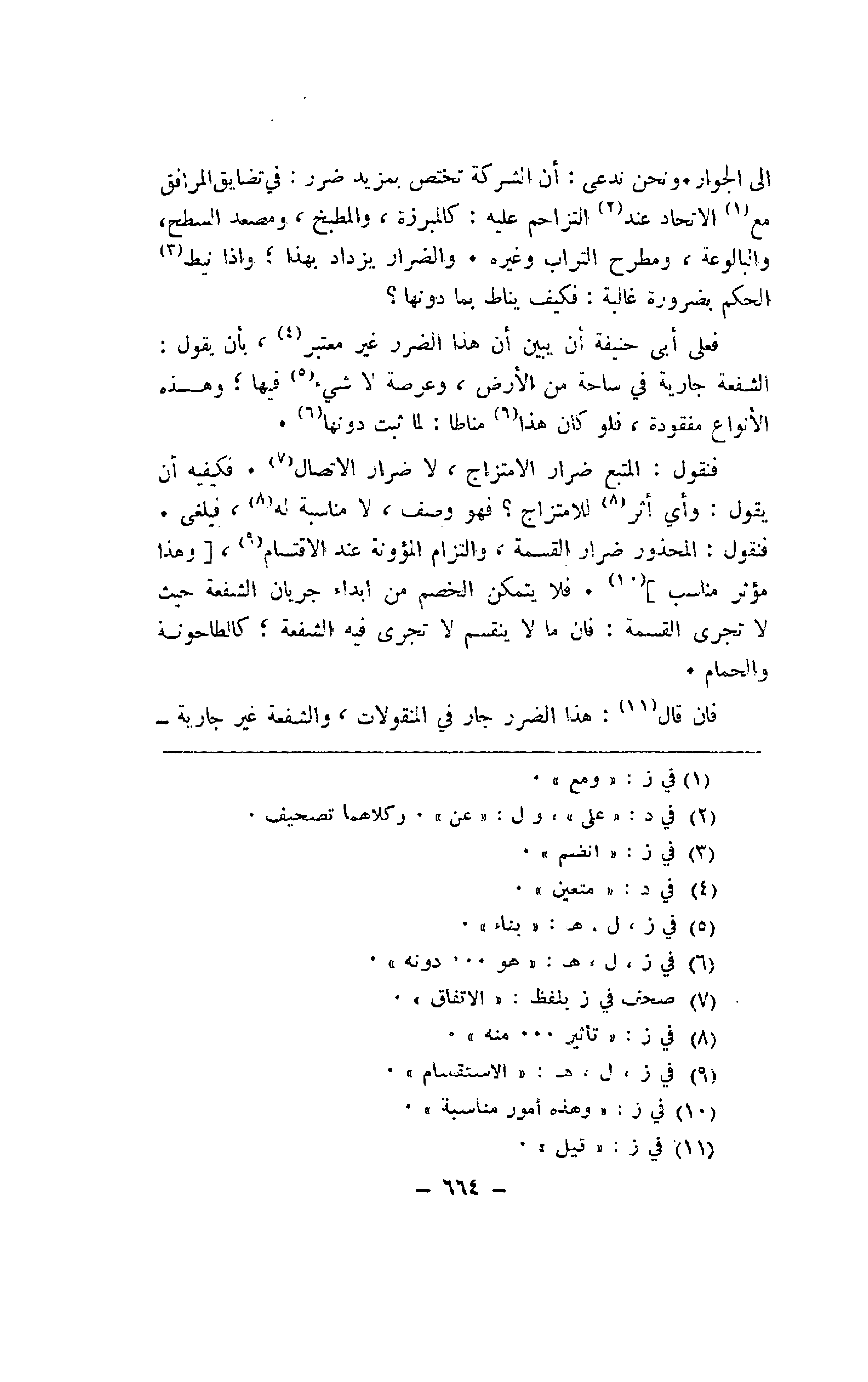 فعلى أبي حنيفة أن يبين أن هذا الضرر غير معتبر، بأن يقول: الشفعة جارية في ساحة من الأرض، وعرصة لا شيء فيها؛ وهذه الأنواع مفقودة، فلو كان هذا مناطًا: لما ثبت دونها.