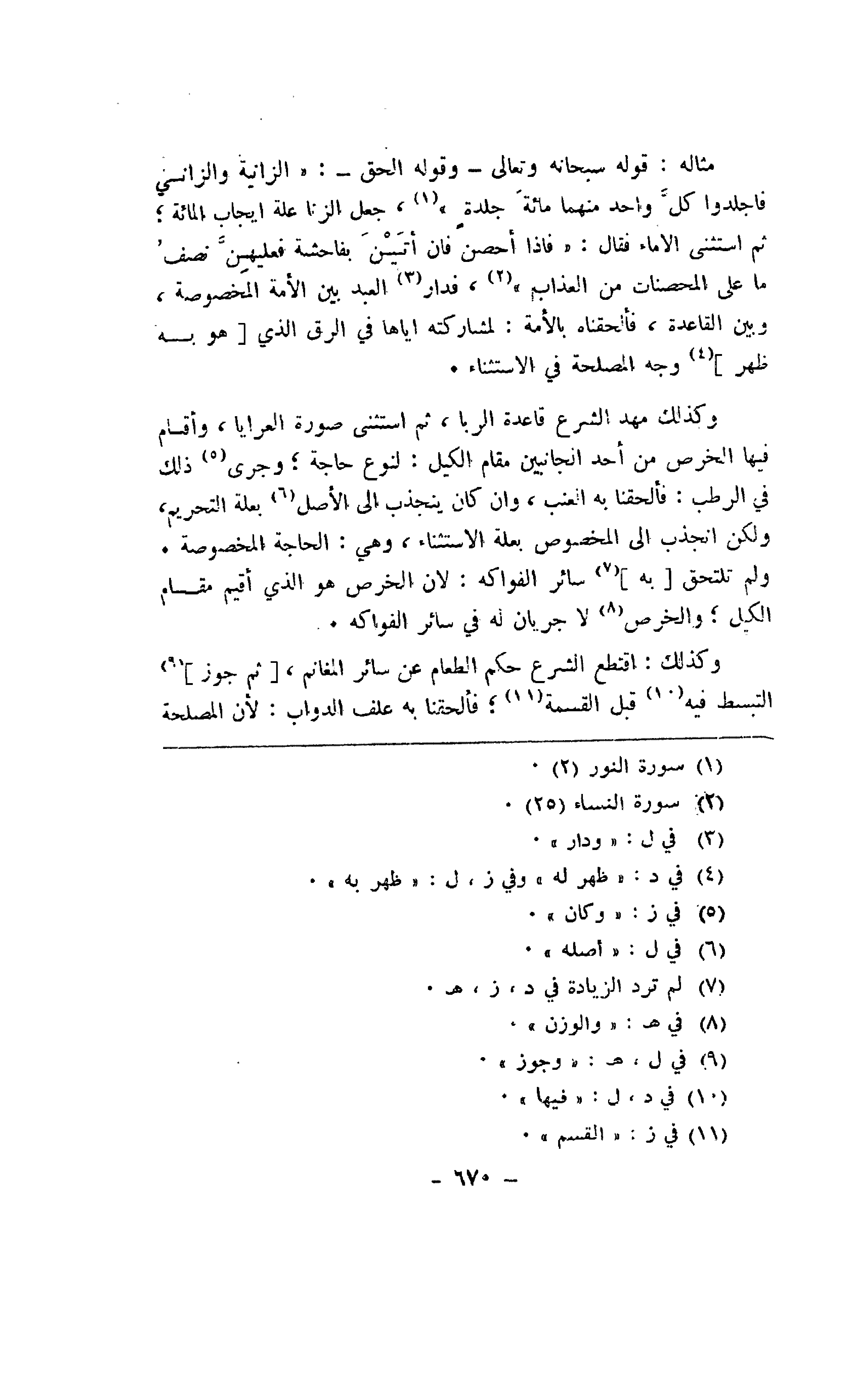 مثاله: قوله سبحانه وتعالى -وقوله الحق-: {الزانية والزاني فاجلدوا كل واحد منهما مائة جلدةٍ}، جعل الزنا علة إيجاب المائة؛ ثم استثنى الإماء فقال: {فإذا أحصن فإن أتين بفاحشة فعليهن نصف ما على المحصنات من العذاب}، فدار العبد بين الأمة المخصوصة، وبين القاعدة، فألحقناه بالأمة: لمشاركته بالأمة: لمشاركته إياها في الرق الذي [هو به ظهر] وجه المصلحة في الاستثناء.