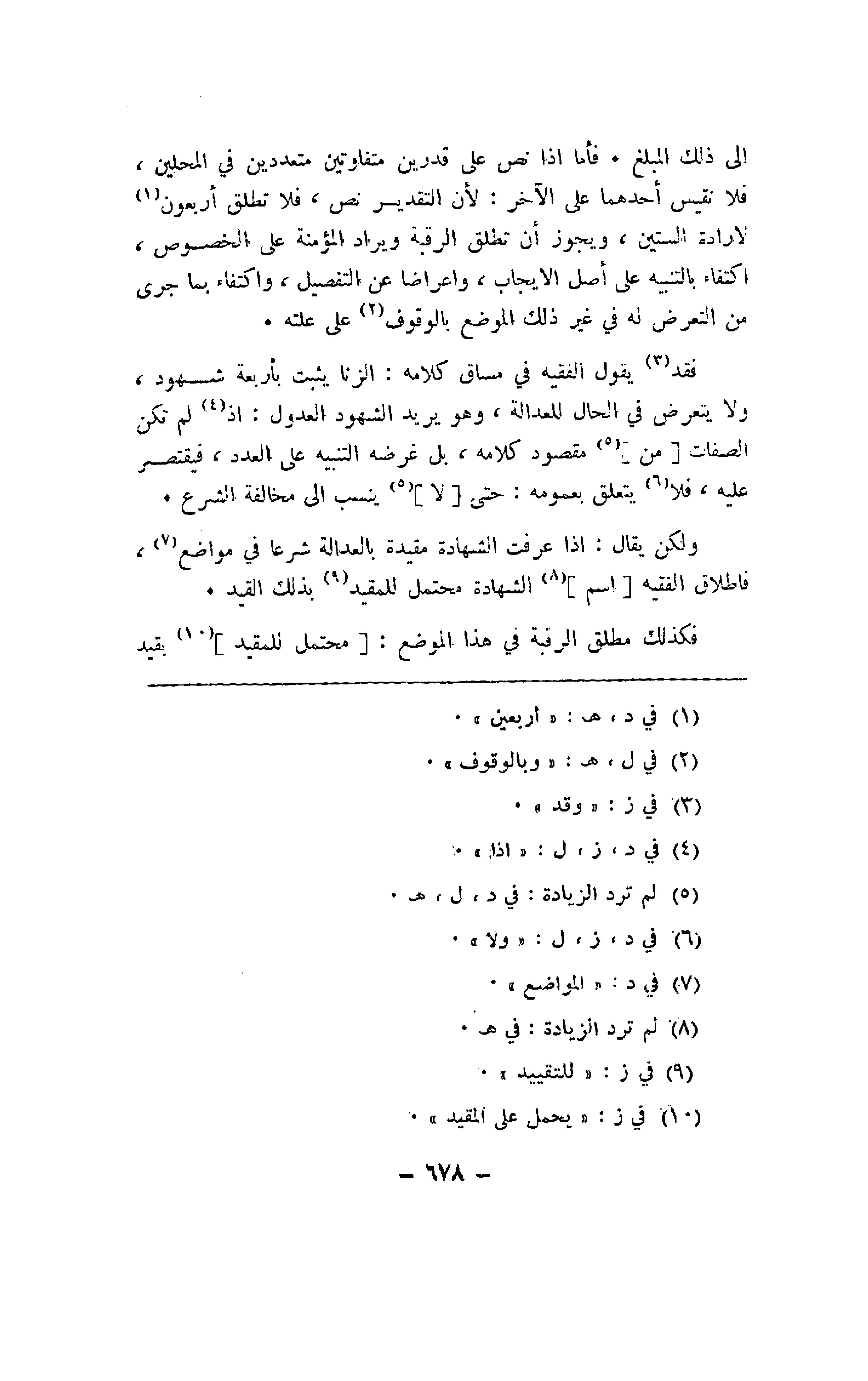 فقد يقول الفقيه في مساق كلامه: الزنا يثبت بأربعة شهود، ولا يتعرض في الحال للعدالة، وهو يريد الشهود العدول: إذ لم تكن الصفات [من] مقصود كلامه، بل غرضه التنبيه على العدد، فيقتصر عليه، فلا يتعلق بعمومه: حتى [لا] ينسب إلى مخالفة الشرع.