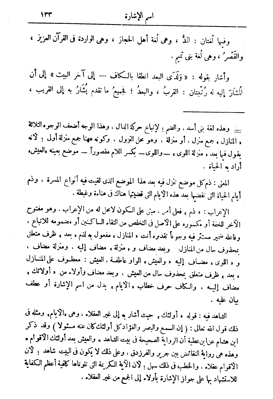 الشاهد فيه: قوله " أولئك " حيث أشار به إلى غير العقلاء، وهي " الايام " ومثله في ذلك قول الله تعالى: (إن السمع والبصر والفؤاد كل أولئك كان عنه مسئولا) وقد ذكر ابن هشام عن ابن عطية أن الرواية الصحيحة في بيت الشاهد والعيش بعد أولئك الاقوام وهذه هي رواية النقائض حين جرير والفرزدق، وعلى ذلك لا يكون في البيت شاهد، لان الاقوام عقلاء، والخطب في ذلك سهل، لان الآية الكريمة التي تلوناها كافية أعظم الكفاية للاستشهاد بها على جواز الاشارة بأولاء إلى الجمع من غير العقلاء.