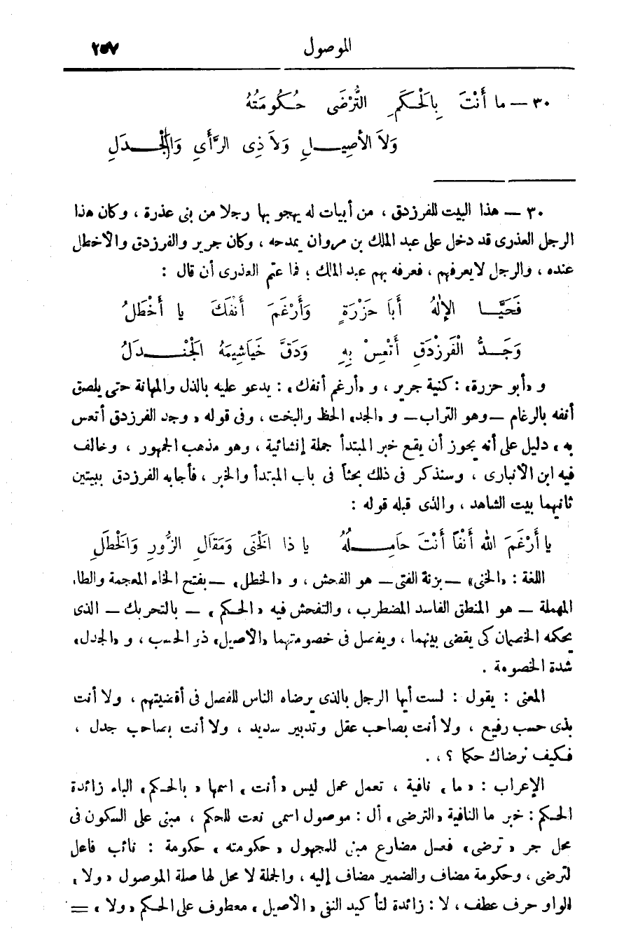 30 - ما أنت بالحكم الترضى حكومته ... ولا الأصيل ولا ذي الرأي والجدل
