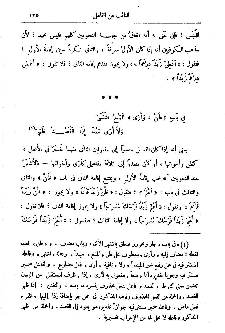 في باب ظن وأرى المنع اشتهر ... ولا أرى منعا إذا القصد ظهر (1)