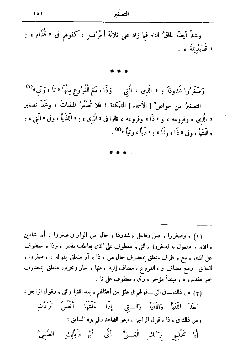 وصغروا شذوذا "الذي التي ... وذا" مع الفروع منها تا وتي