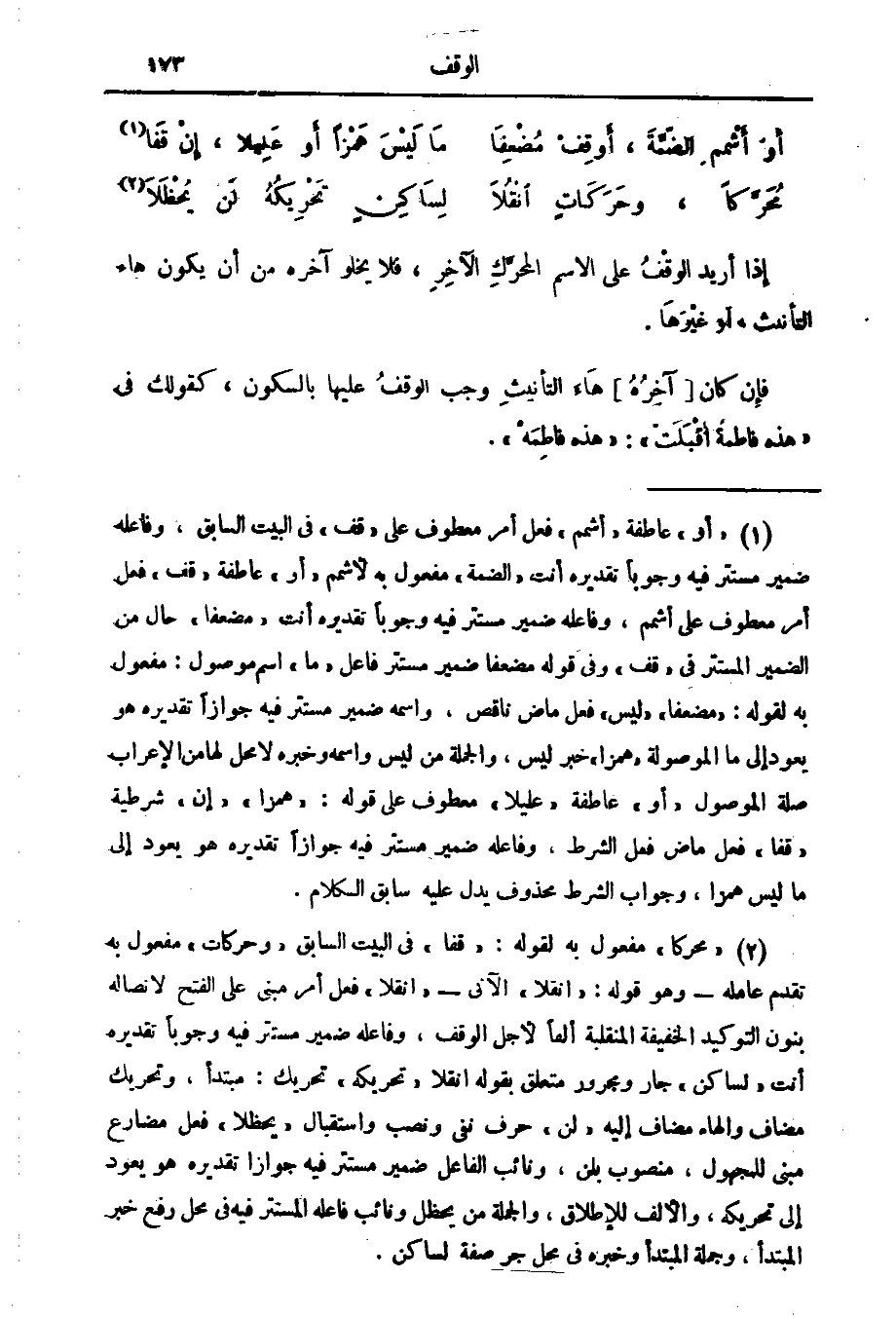 فإن كان آخره هاء التأنيث وجب الوقف عليها بالسكون كقولك في هذه فاطمة أقبلت هذه فاطمة.