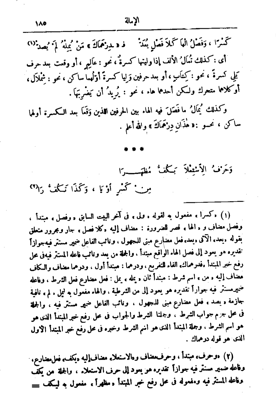 أي كذلك تمال الألف إذا وليتها كسرة نحو عالم أو وقعت بعد حرف يلي كسرة نحو كتاب أو بعد حرفين وليا كسرة أولهما ساكن نحو شملال أو كلاهما متحرك ولكن أحدهما هاء نحو يريد أن يضربها.