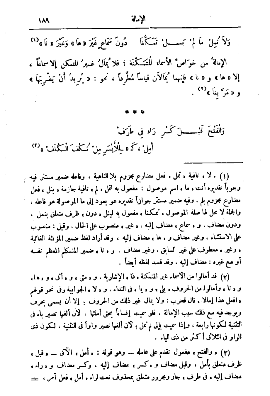 الإمالة من خواص الأسماء المتمكنة فلا يمال غير المتمكن إلا سماعا إلا ها ونا فإنهما يمالان قياسا مطردا نحو يريد أن يضربها ومر بنا.