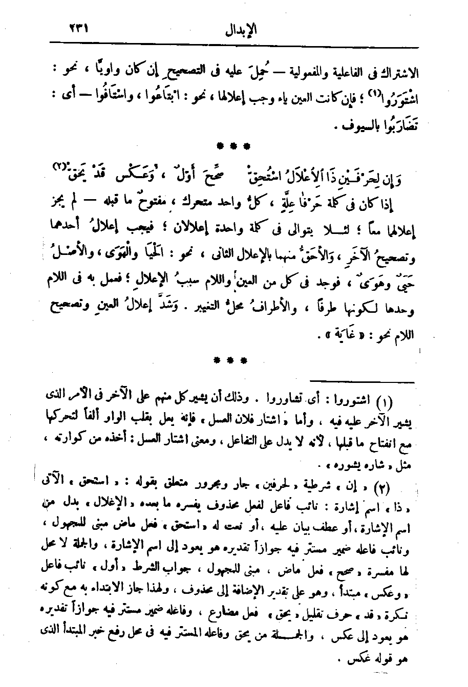 الفاعلية والمفعولية حمل عليه في التصحيح إن كان واويا نحو اشتوروا فإن كانت العين ياء وجب إعلالها نحو ابتاعوا واستافو أي تضاربوا بالسيوف.