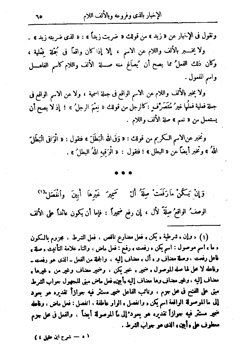 ولا يخبر بالألف واللام عن الاسم إلا إذا كان واقعا في جملة فعلية وكان ذلك الفعل مما يصح أن يصاغ منه صلة الألف واللام كاسم الفاعل واسم المفعول.