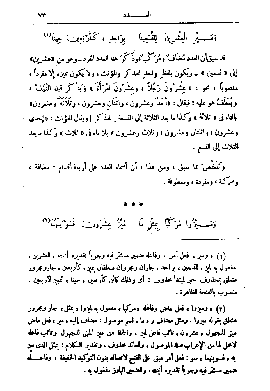 وتلخص مما سبق ومن هذا أن أسماء العدد على أربعة أقسام مضافة ومركبة ومفردة ومعطوفة.