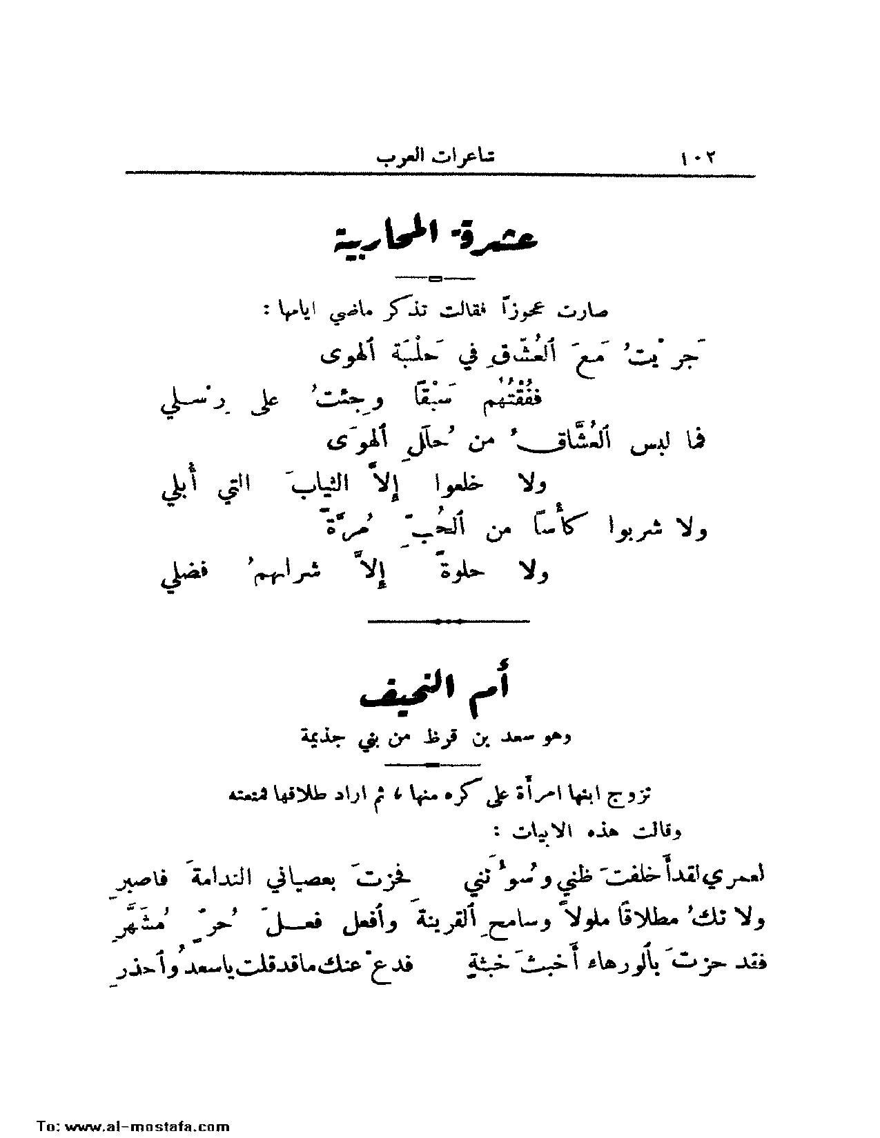 كان سعد بن قرظ الشاعرة قد تزوج امرأةً على كره منها ثم أراد طلاقها فمنعته قائلة: (من الطويل)