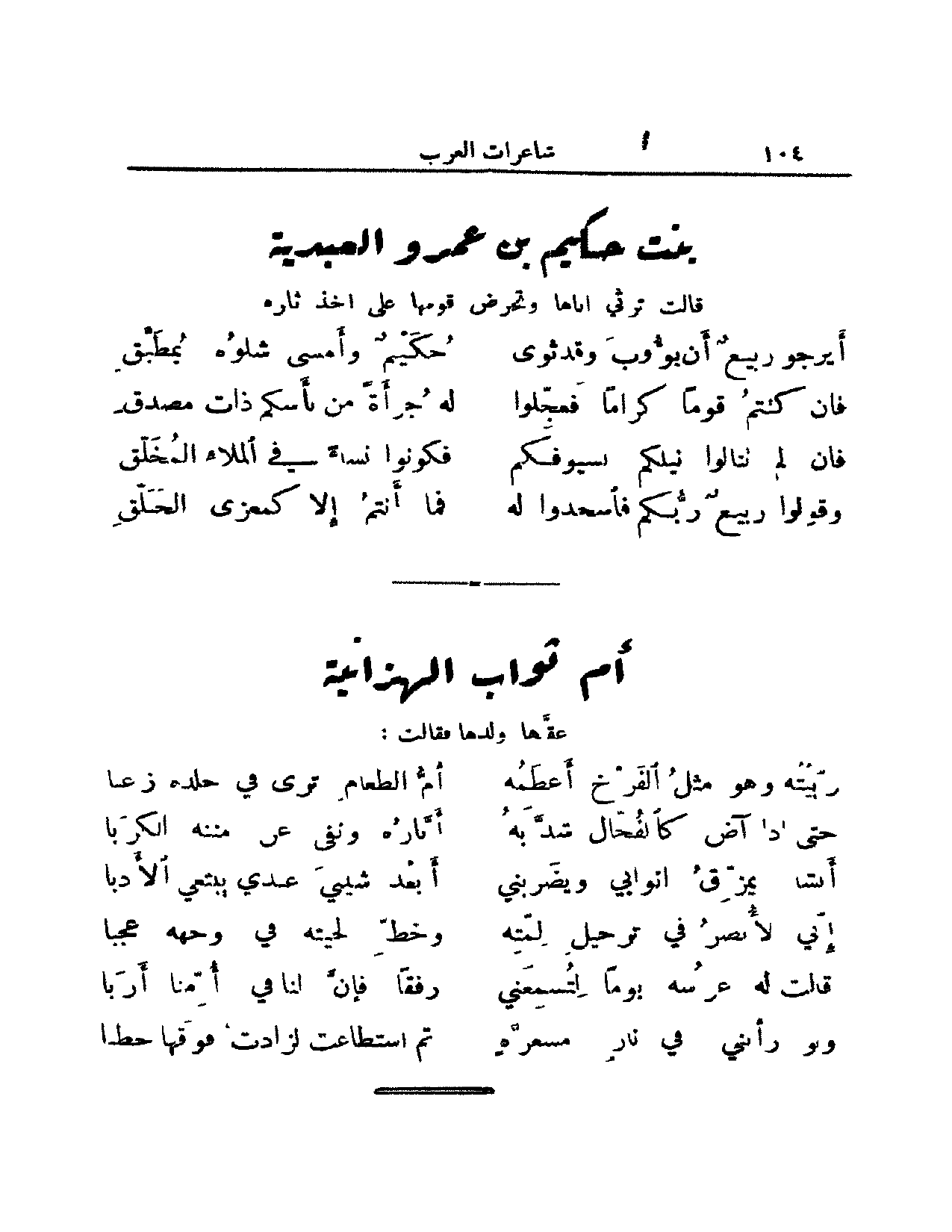 قالت له عرسه يوماً لتسمعي ... رفقاً فإن لنا في أمنا أربا