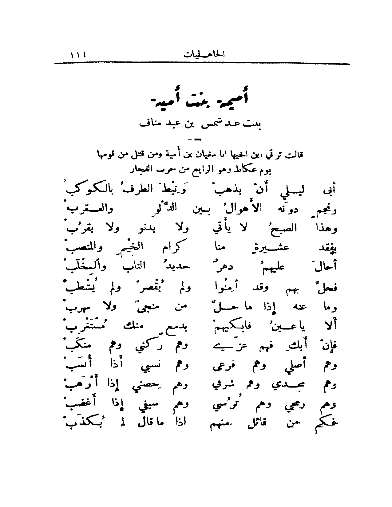 قالت ترثي ابن أخيها أبا سفيان بن أمية, ومن قتل من قومها يوم عكاظ وهو اليوم الرابع من أيام حرب الفجار: (من مجزوء الوافر)