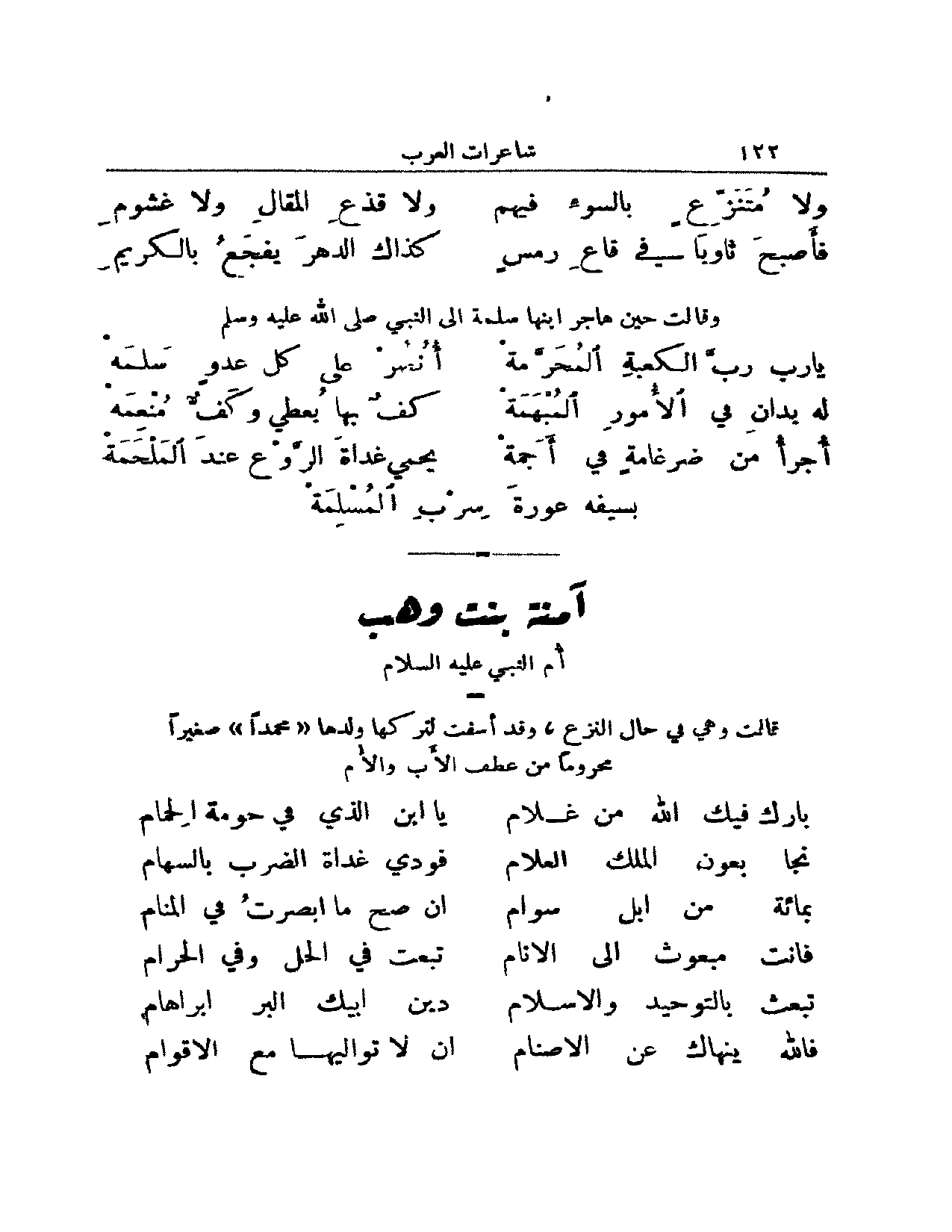 قالت وهي في حال النزع, وقد أسفت لتركها ولدها "محمد" صغيراً محروماً من عطف الأب والأم: (من الرجز)