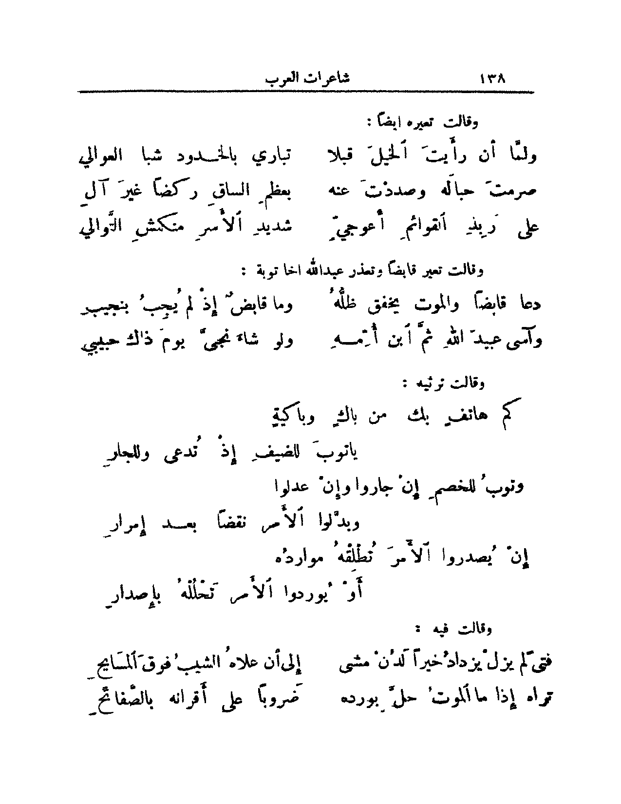وقالت تعير قابضاً وتعذر عبد الله أخا توبة: (من الطويل)