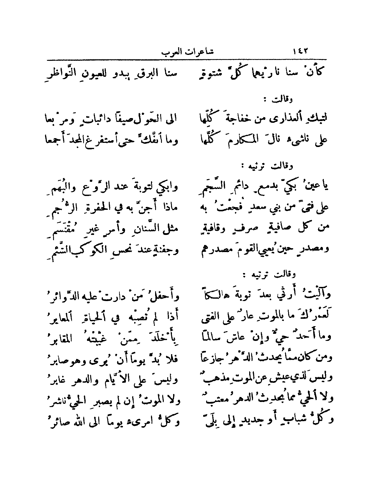 وقالت ترثي توبة, وتعتبر: (من الطويل)