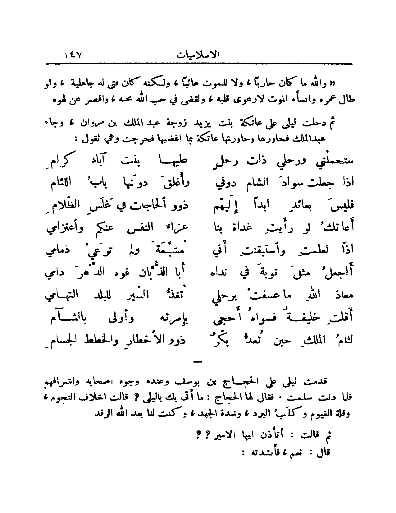 ثم قالت: أتأذن أيها الأمير قال: نعم, فأنشدته: