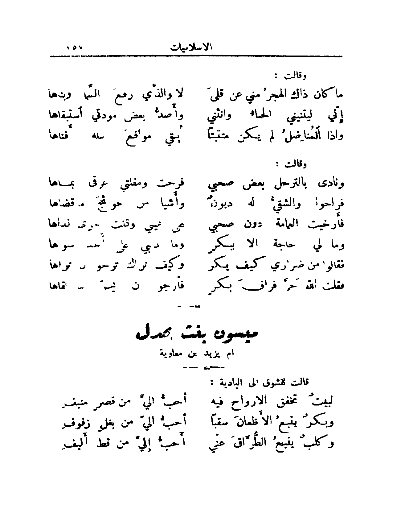 ميسون بنت بحدل بن أنيف الكلبي. أم يزيد بن معاوية تزوجها معاوية وطلقها من فرط حنينها إلى البادية. توفيت نحوى سنة 80 هجرية.