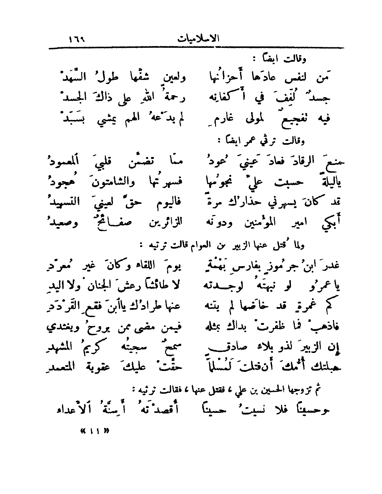 ثم تزوجها الحسين بن علي, فقتل عنها, فقالت ترثيه: (من الخفيف)