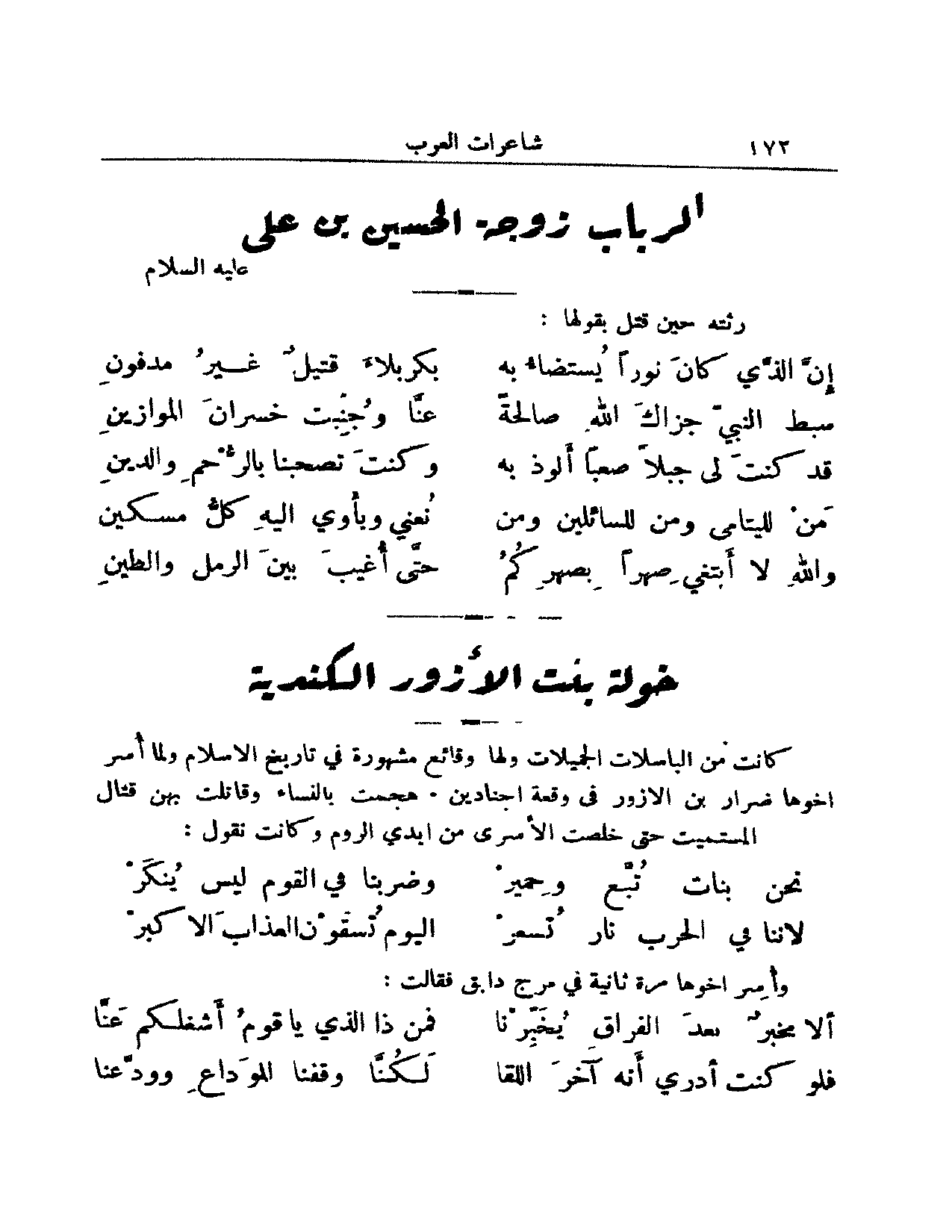 رثت زوجها الحسين فقالت: (من البسيط)