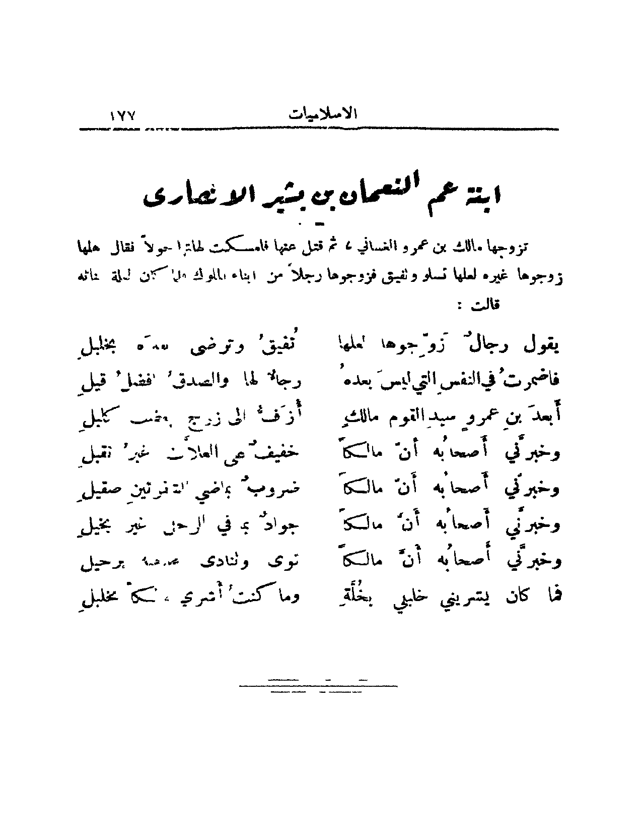 أبعد ابن عمرٍ وسيد القوم مالكٍ ... أزف إلى زوج بعضب كليل؟!