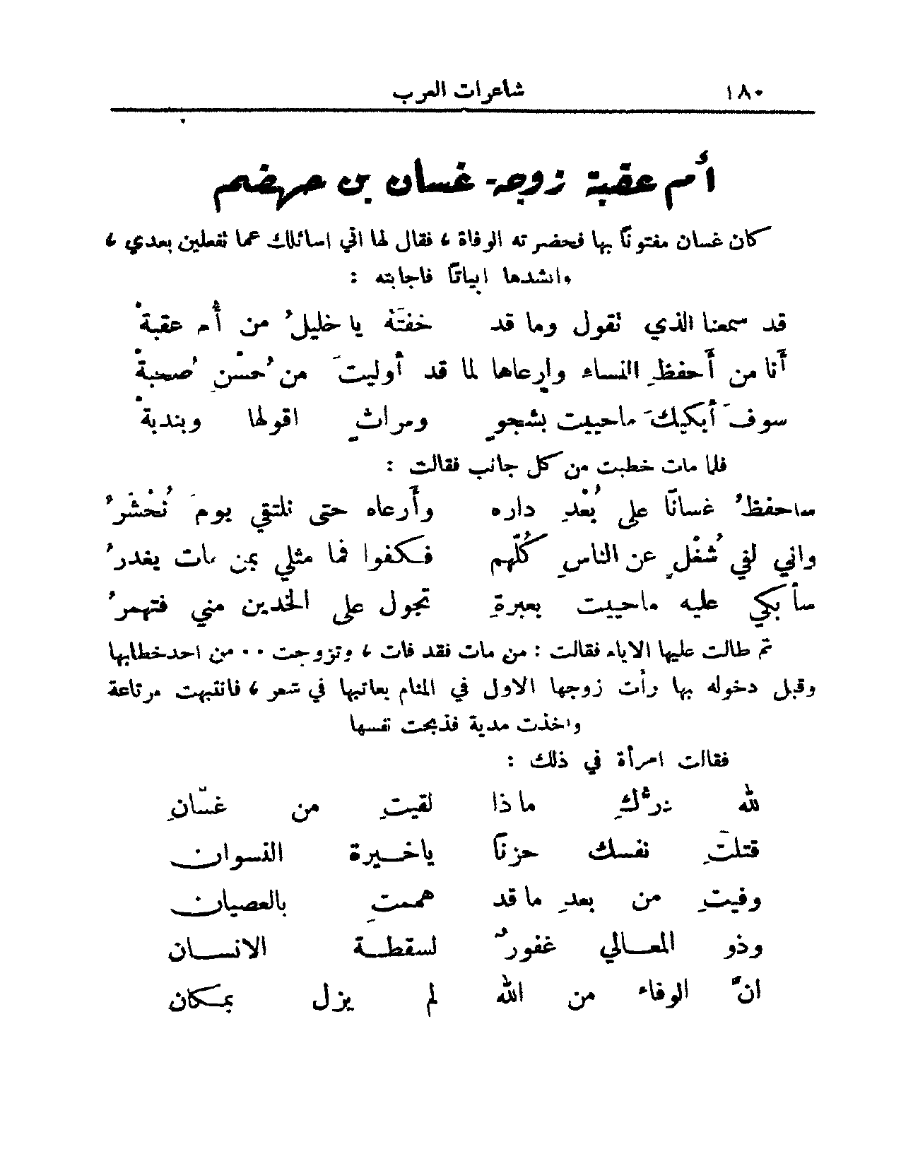 قالت أم عقبة تعاهد زوجها غسان على رعاية عهده بعد موته: (من الخفيف)
