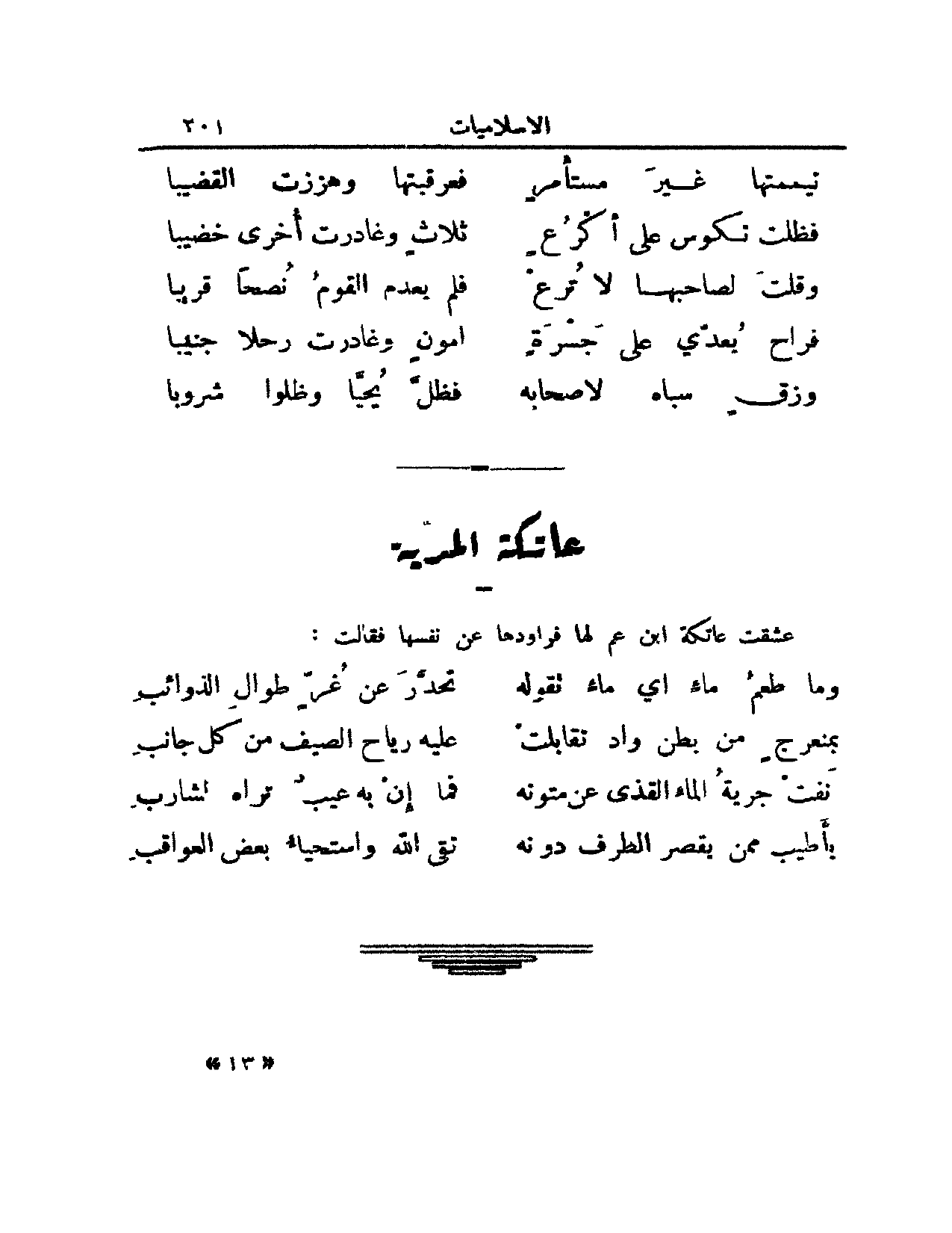 أحبت عاتكة ابن عم لها فطمع وراودها عن نفسها فقالت: (من الطويل)