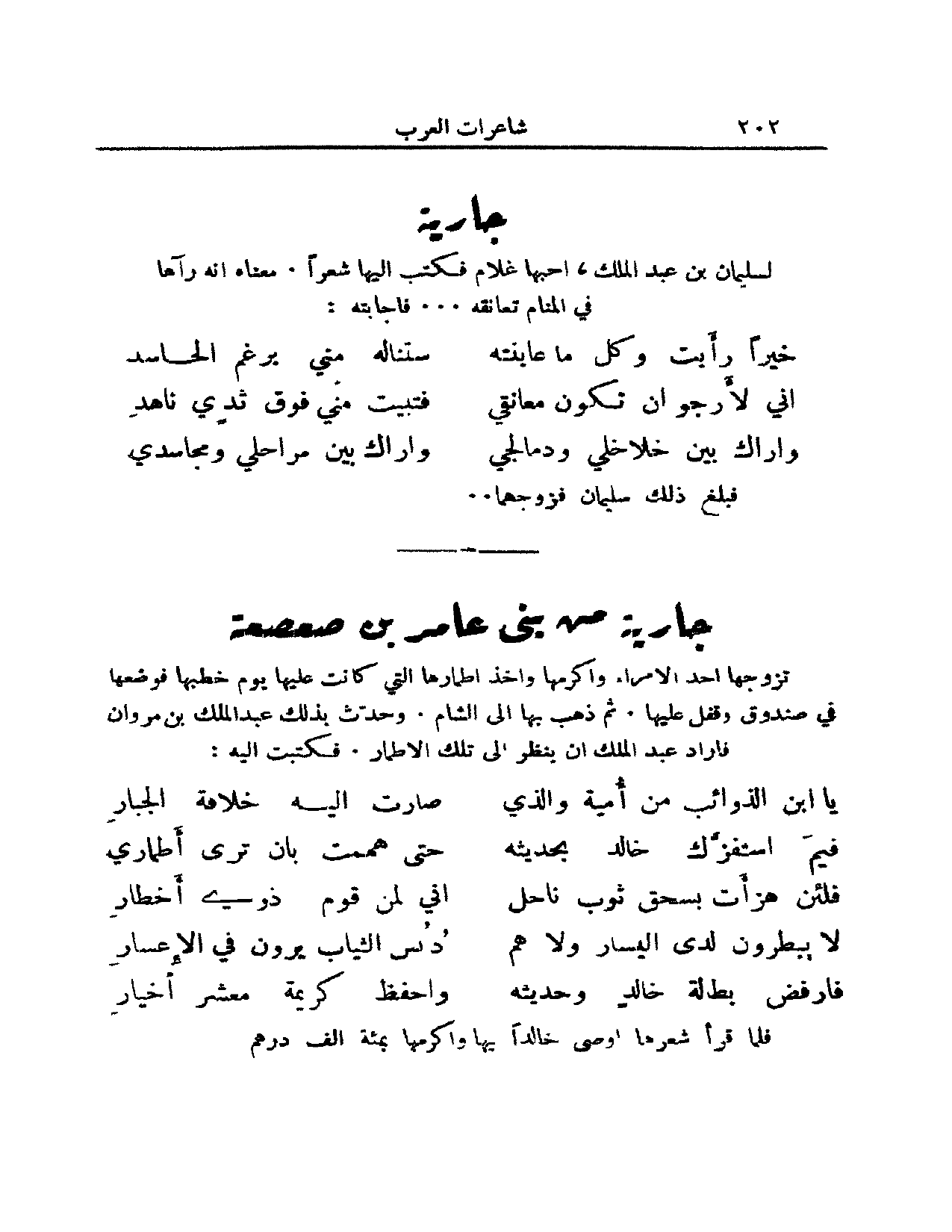 كانت لسليمان بن عبد الملك, أحبها غلام فكتب إليها شعراً. معناه أنه رآها في المنام تعانقه فأجابته: (من الكامل)