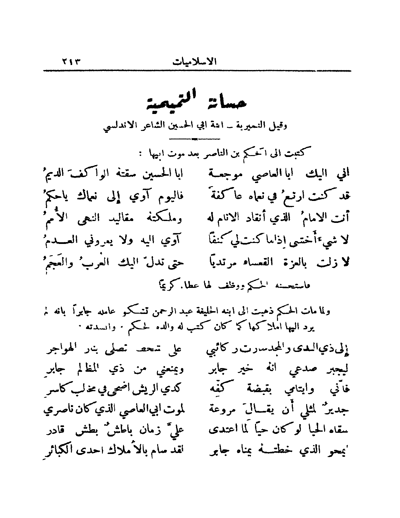 كتبت إلى الحكَم بعد موت أبيها: (من البسيط)