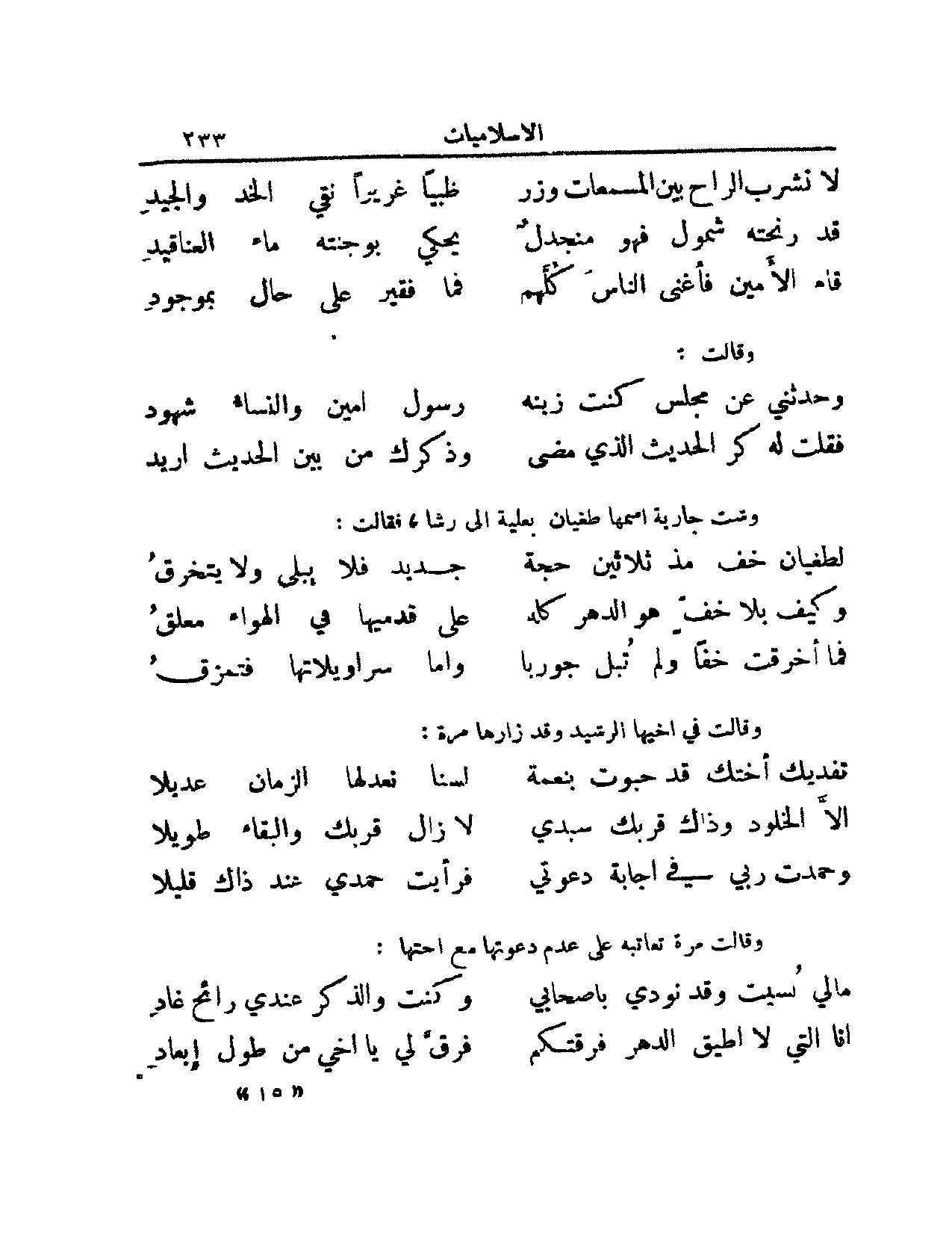 وحدثني عن مجلس كنت زينه ... رسول أمين والنساء شهود