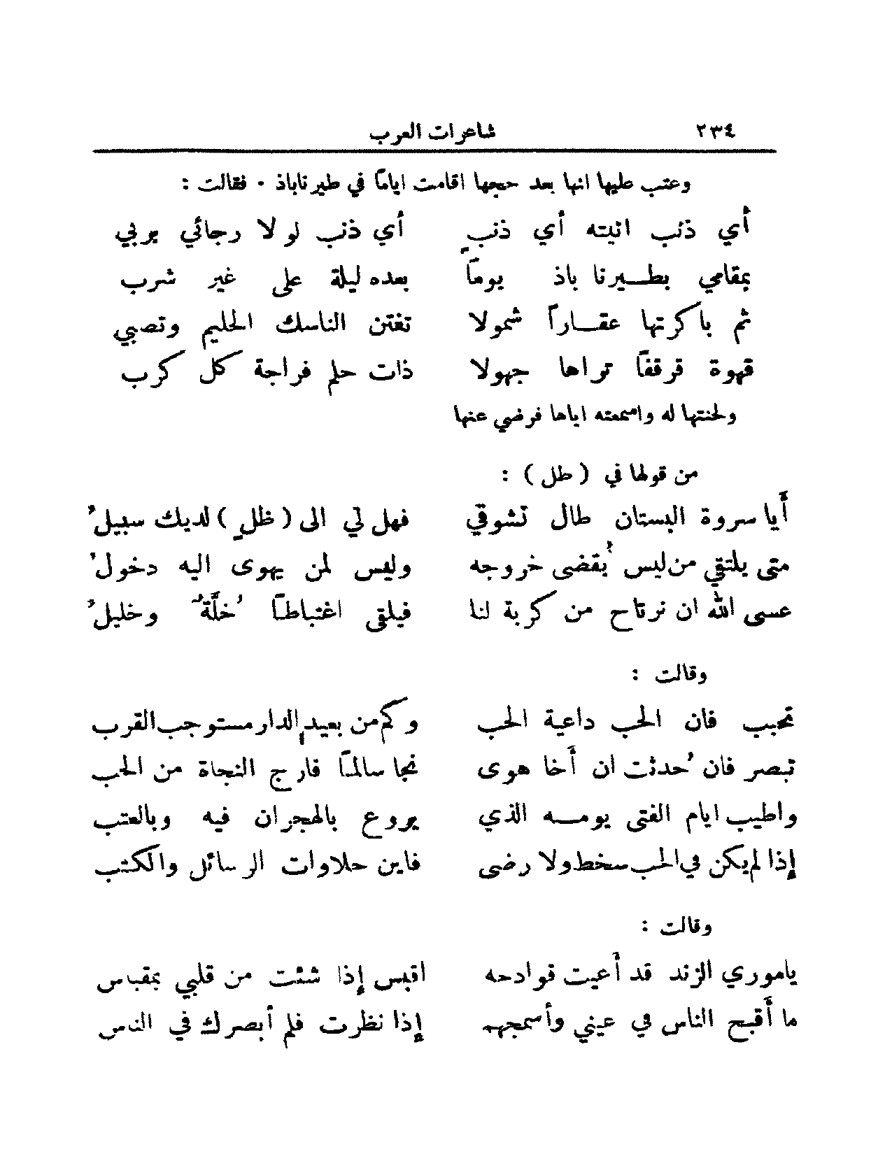 وعتب عليها أنها بعد حجها أقامت أياماً في طيرناباذ. فقالت: (من الخفيف)