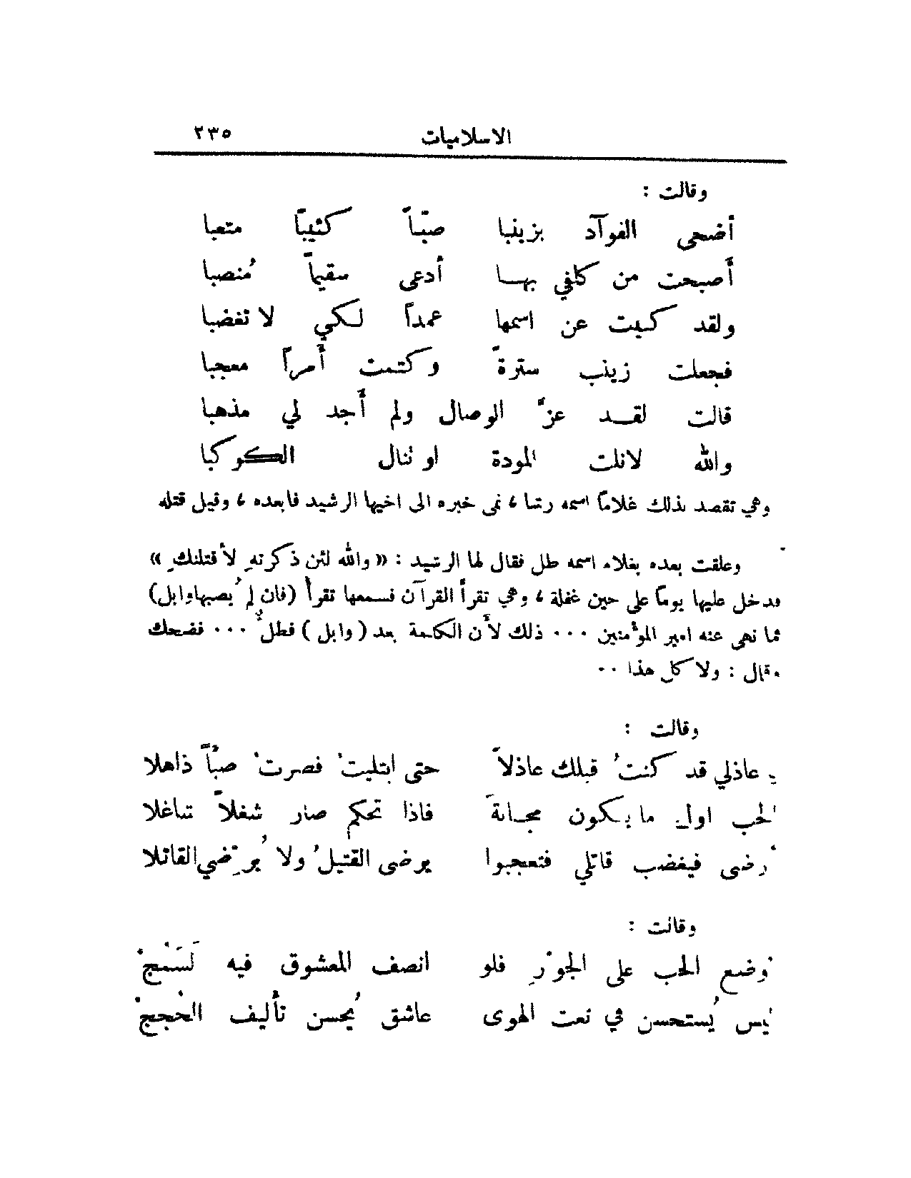 وقالت تكني باسم زينب عن غلامٍ أحبته اسمه رشا: (من مجزوء الكامل)