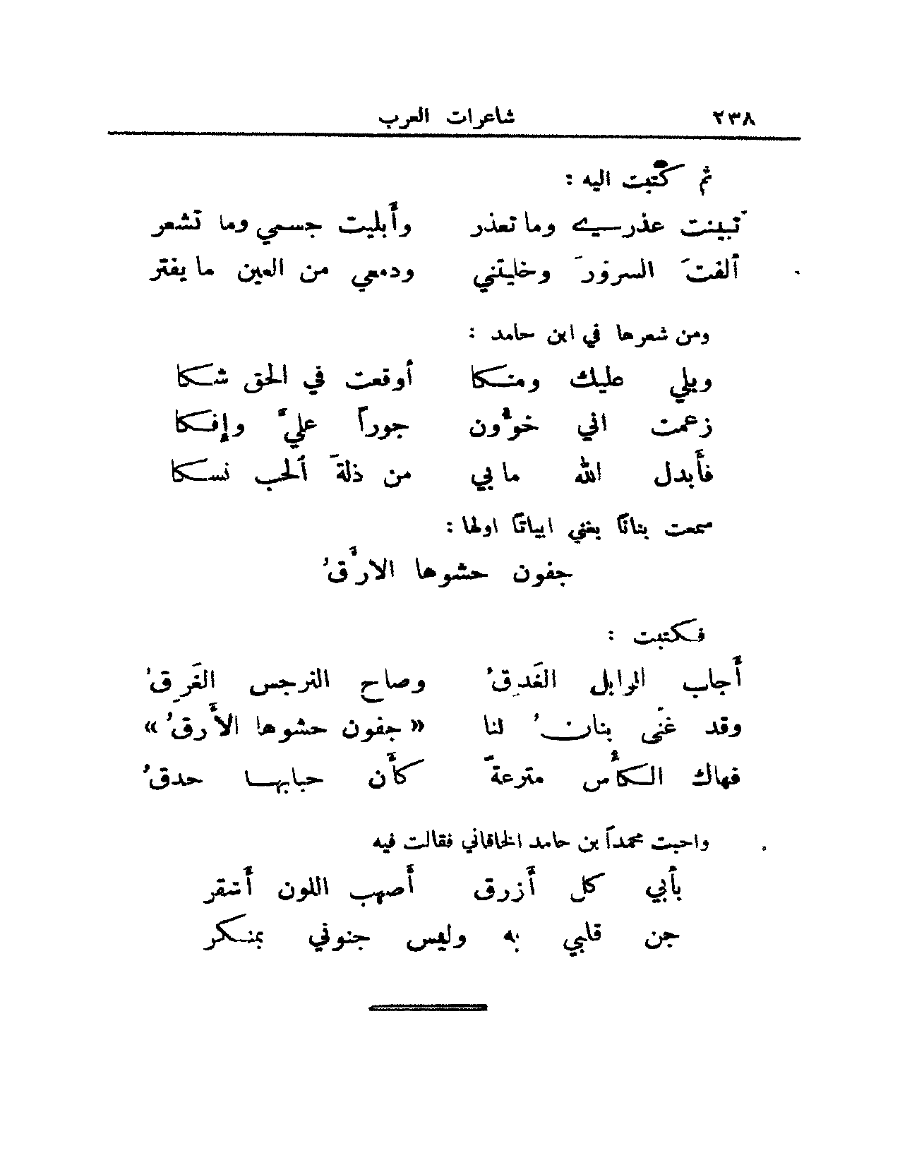 فكتبت إليه شعراً: (من مجزوء الوافر)