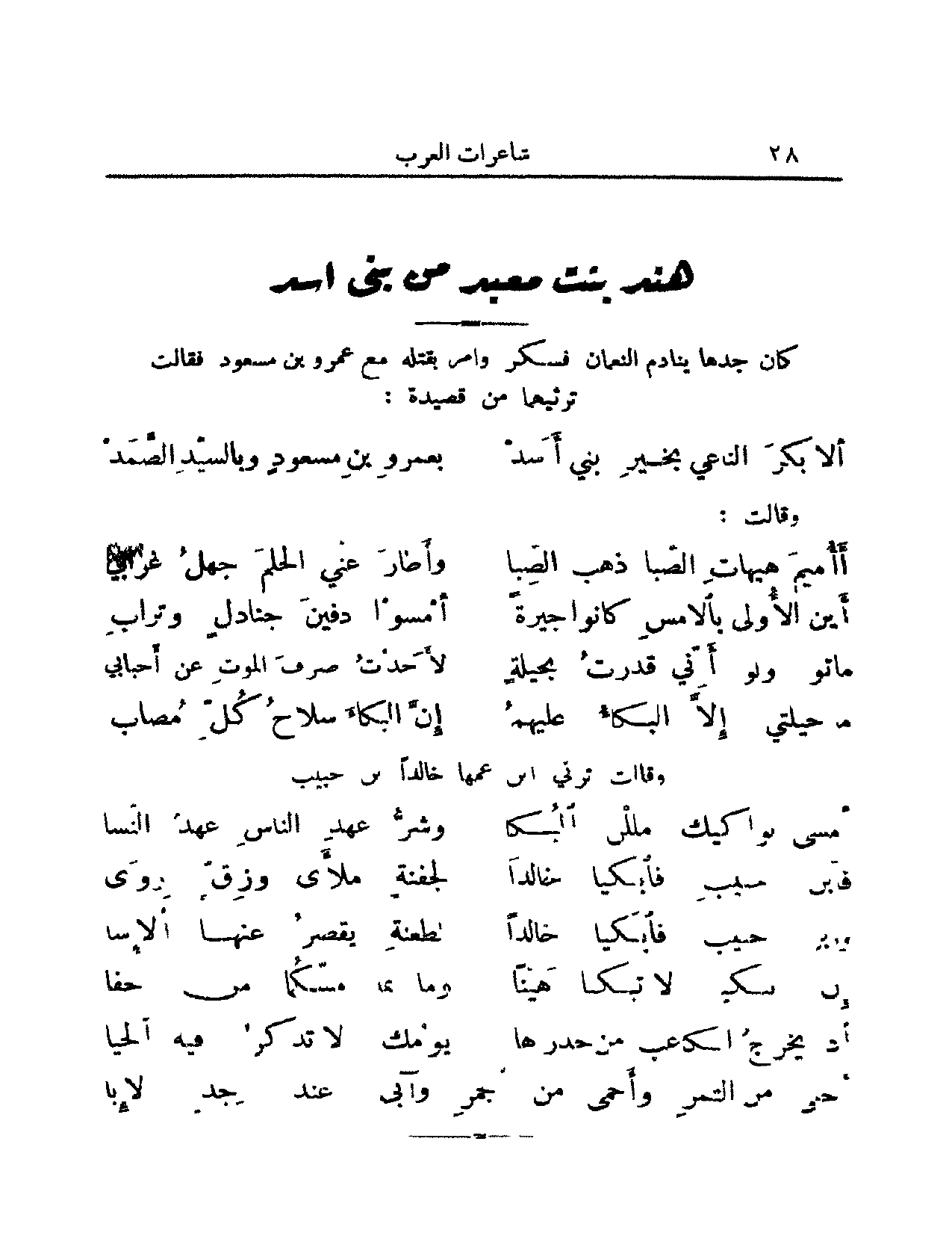 وقالت ترثي ابن عمها خالد بن حبيب: