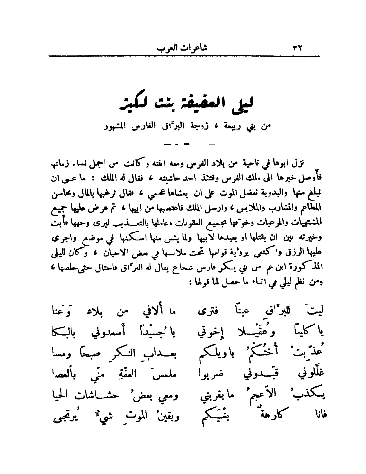 10 ليلى العفيفة بنت لكيز من بني ربيعة, زوجة البراق المشهور