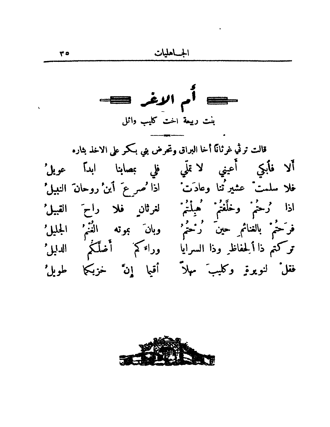 كان بنو تغلب قد قتلوا غرثان أخا البراق زوج ليلى العفيفة, فقالت أم الأغر ترثيه وتحرض بني بكر على الأخذ بثأره: (من الوافر)