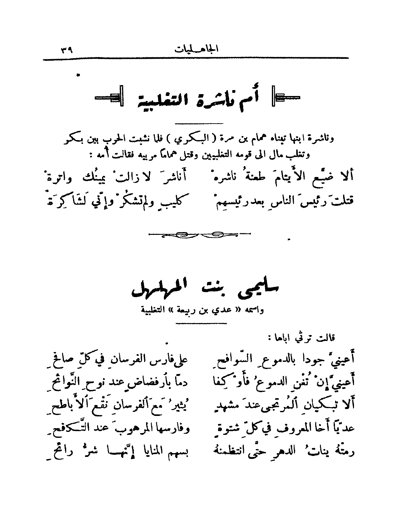 قتلت رئيس الناس بعد رئيسهم ... كليب ولم نشكر وأني لشاكرة