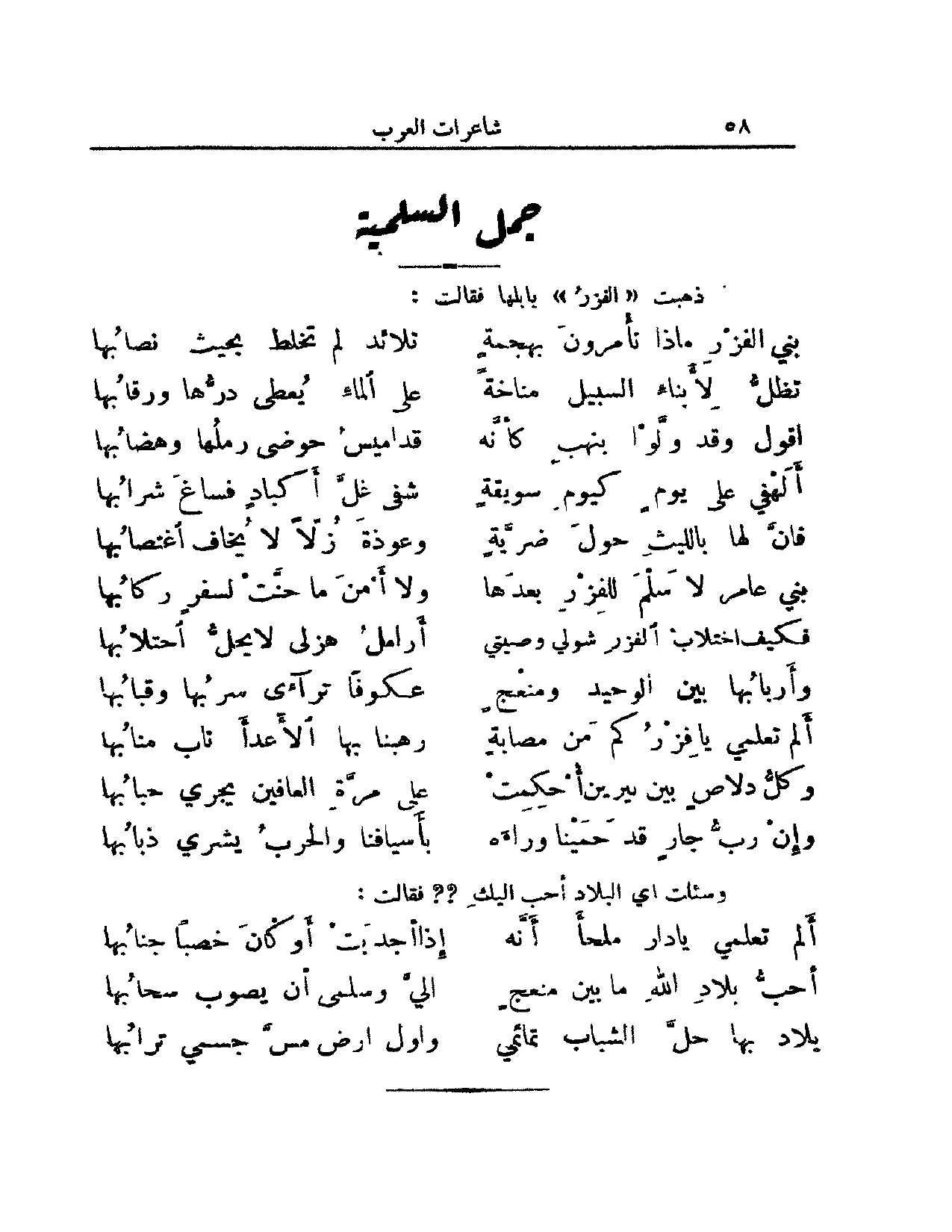 ذهب الفزر ولعلهم من بني فزارة من هوازن بإبلٍ لجمل السليمة فقالت تقرعها: (من الطويل)