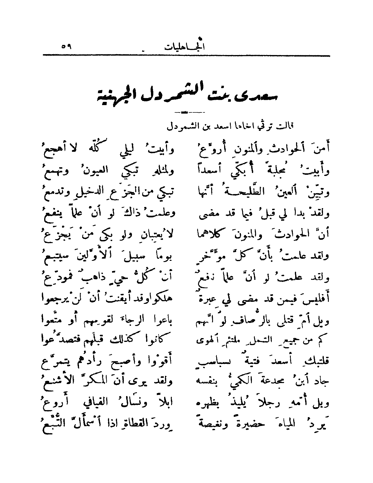 قالت سعدى ترثي أخاها أسعد بن الشمردل: (من الكامل)